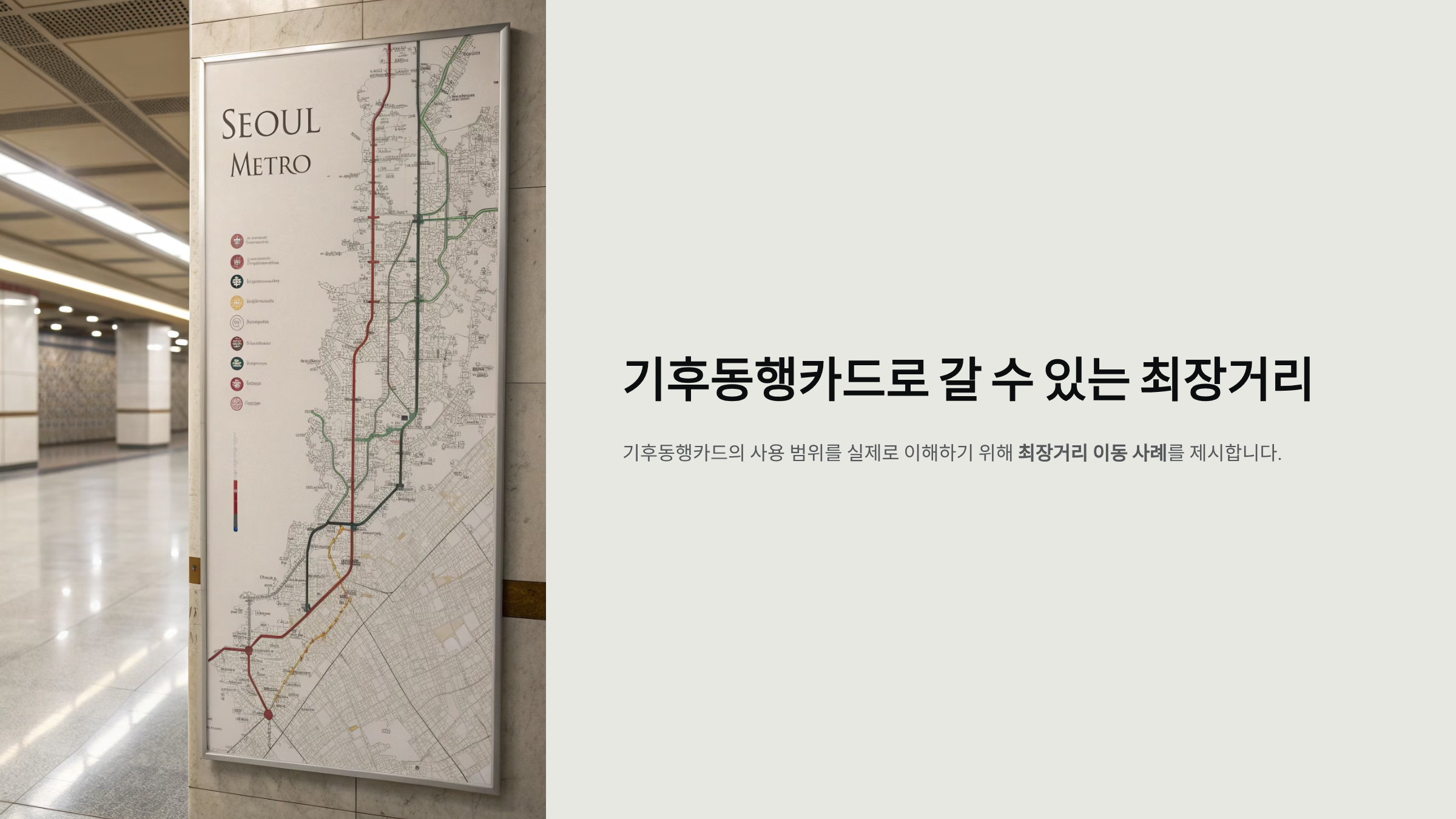 기후동행카드의 사용 범위를 실제로 이해하기 위해 최장거리 이동 사례를 제시한다.