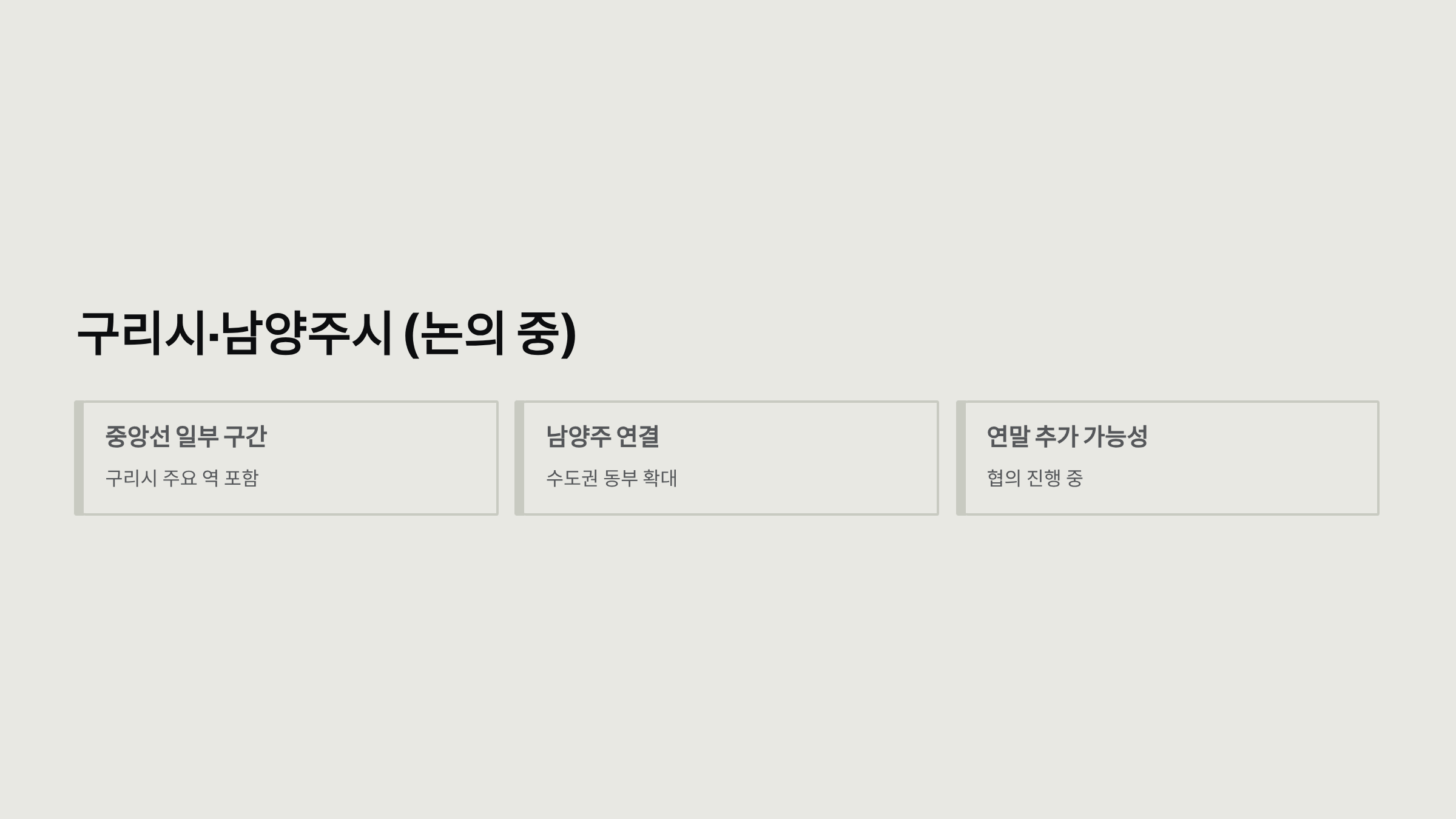 | 2026년 (예정) | 인천, 구리, 남양주 | 미정 |