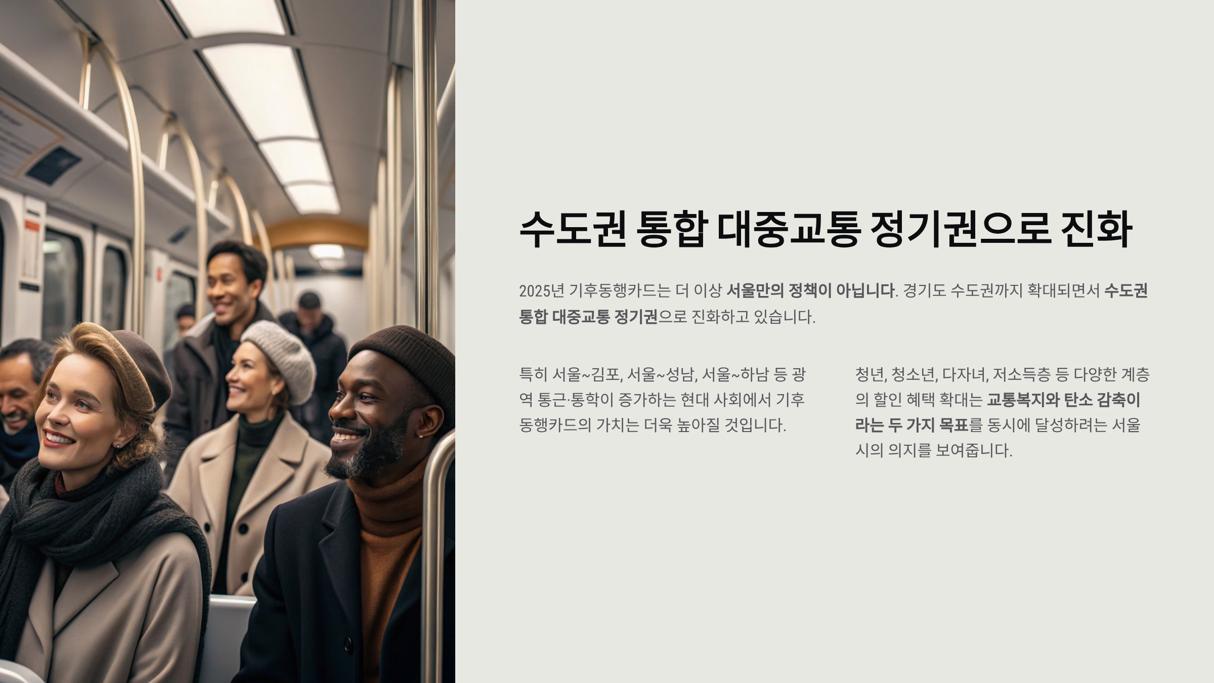 2025년 기후동행카드는 더 이상 서울만의 정책이 아니다. 경기도 수도권까지 확대되면서 수도권 통합 대중교통 정기권으로 진화하고 있다.
