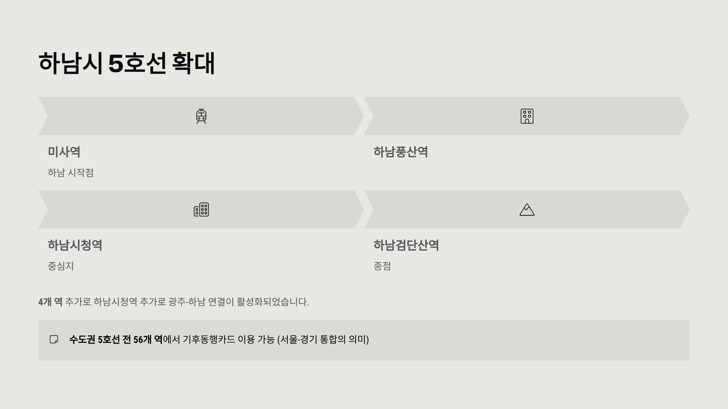 - 특히 하남시청역 추가로 광주-하남 연결 활성화