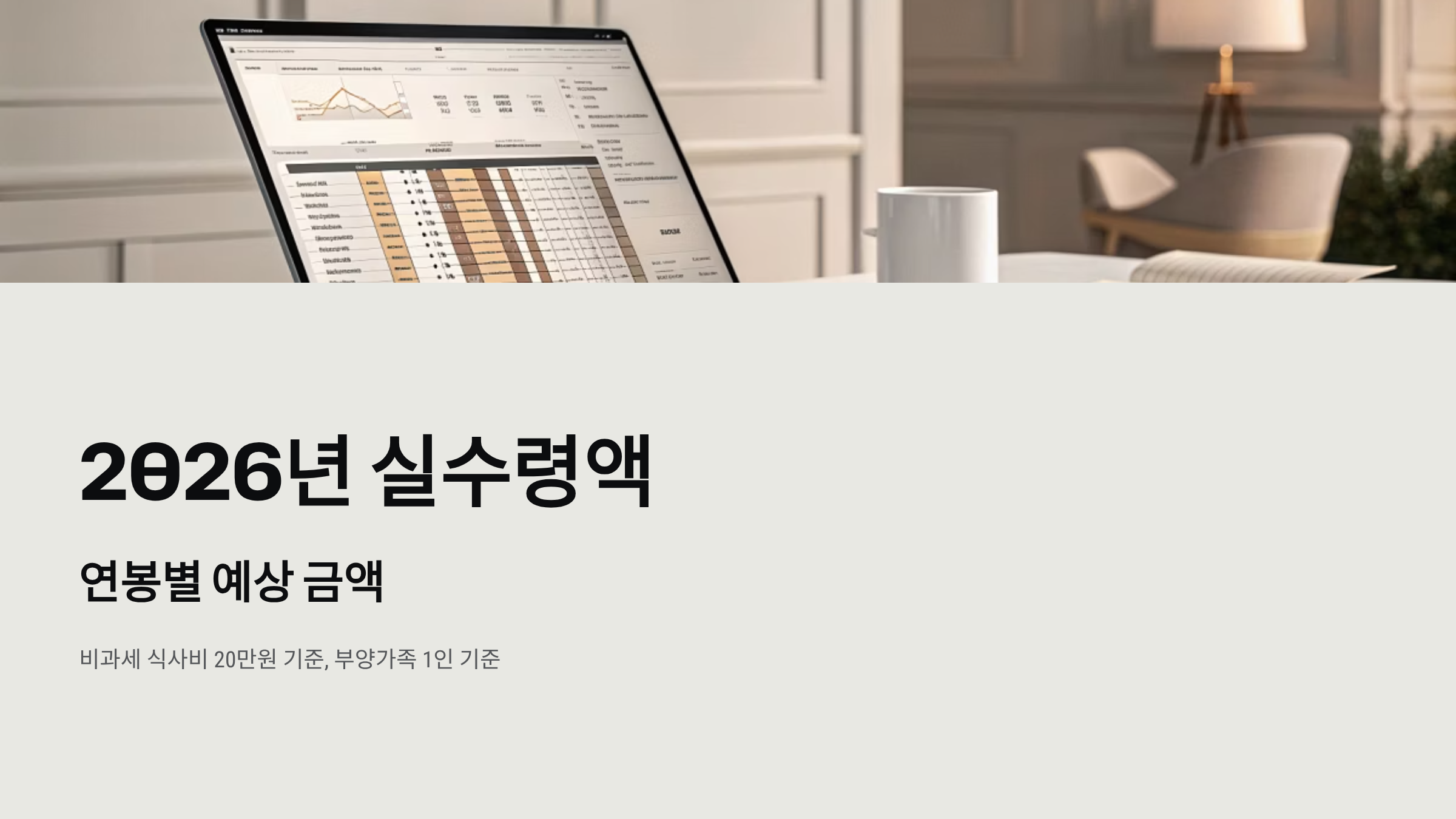 💸 연봉별 2026년 월 실수령액 예상 (비과세 식사비 20만원 기준, 부양가족 1인 기준)