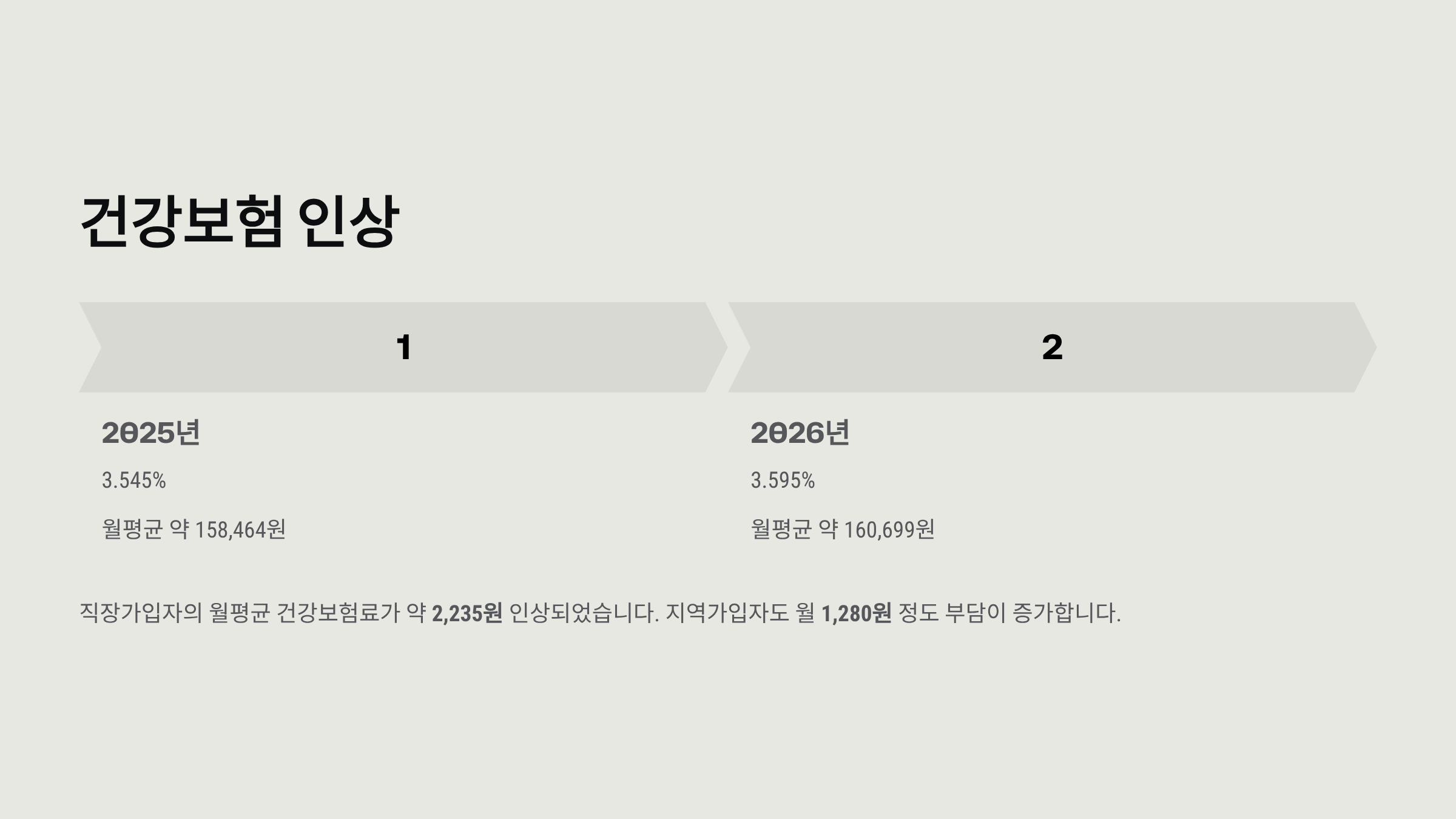 🔹 건강보험: 3.545% → 3.595% (0.05%p 인상)