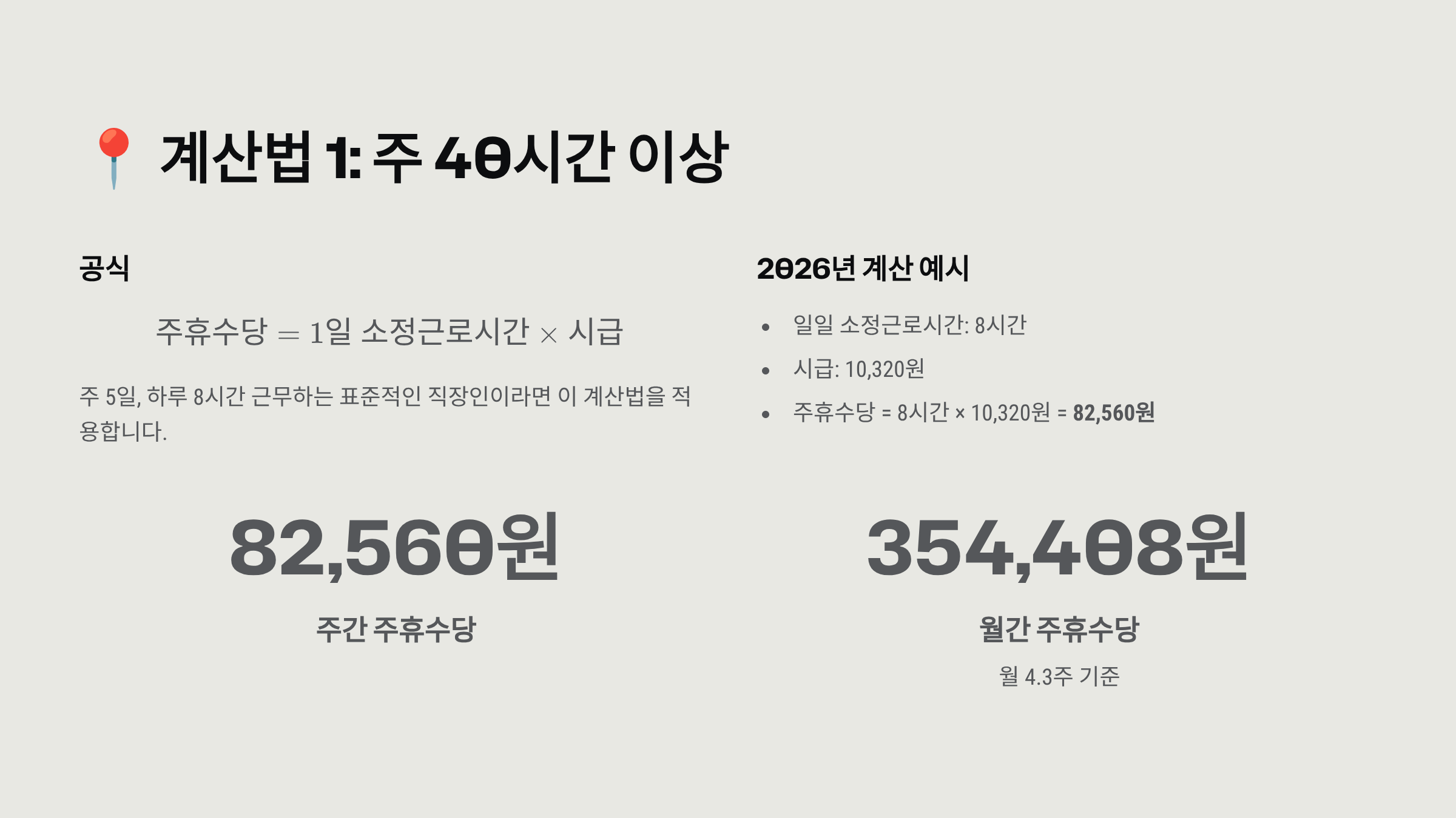 📍 계산법 1: 주 40시간 이상 근무하는 경우 (일반적)
