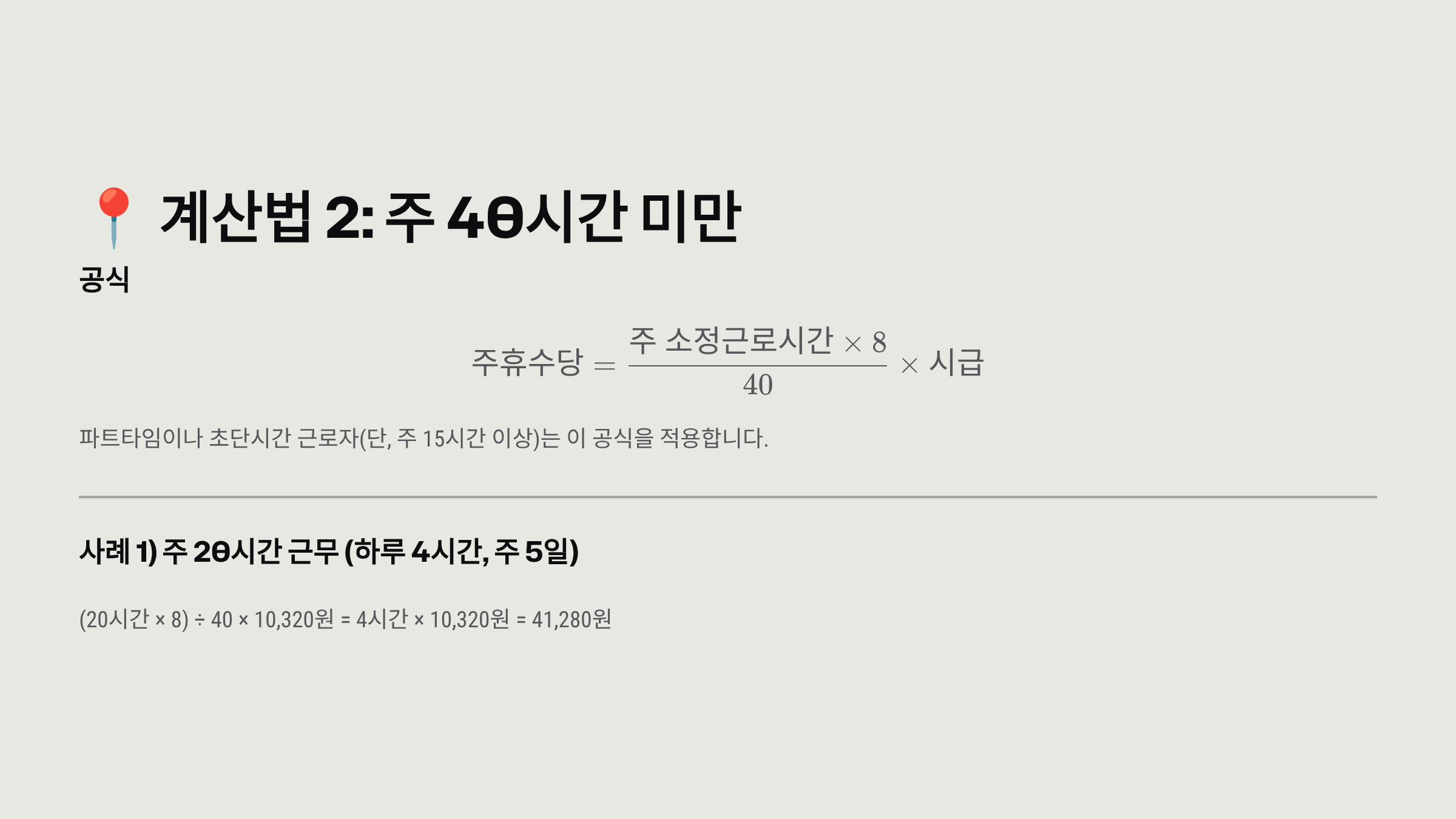 📍 계산법 2: 주 40시간 미만 근무하는 경우 (파트타임)