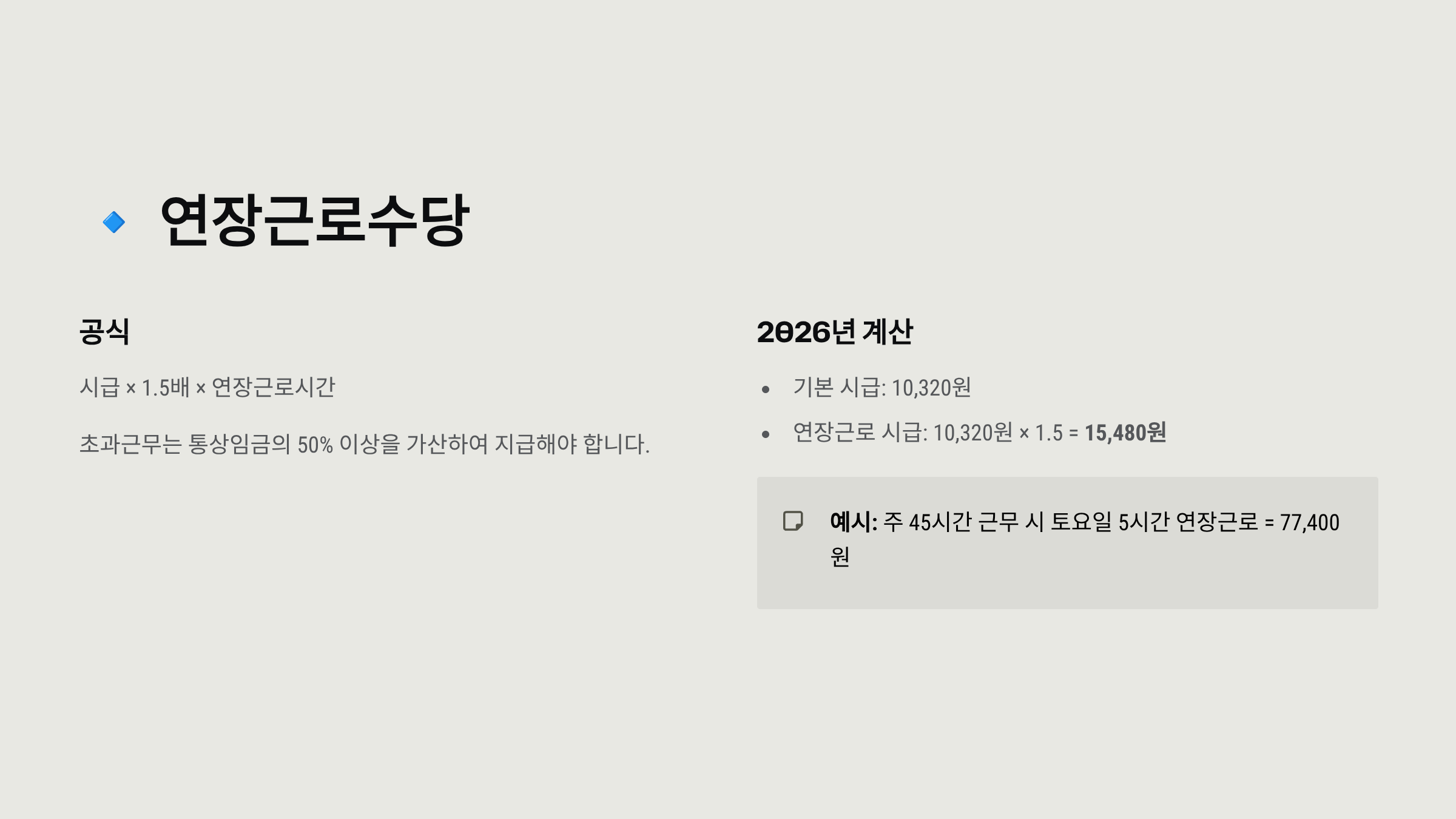 💪 연장근로·야간근로·휴일근로 수당 - 2026년 가산금 정리