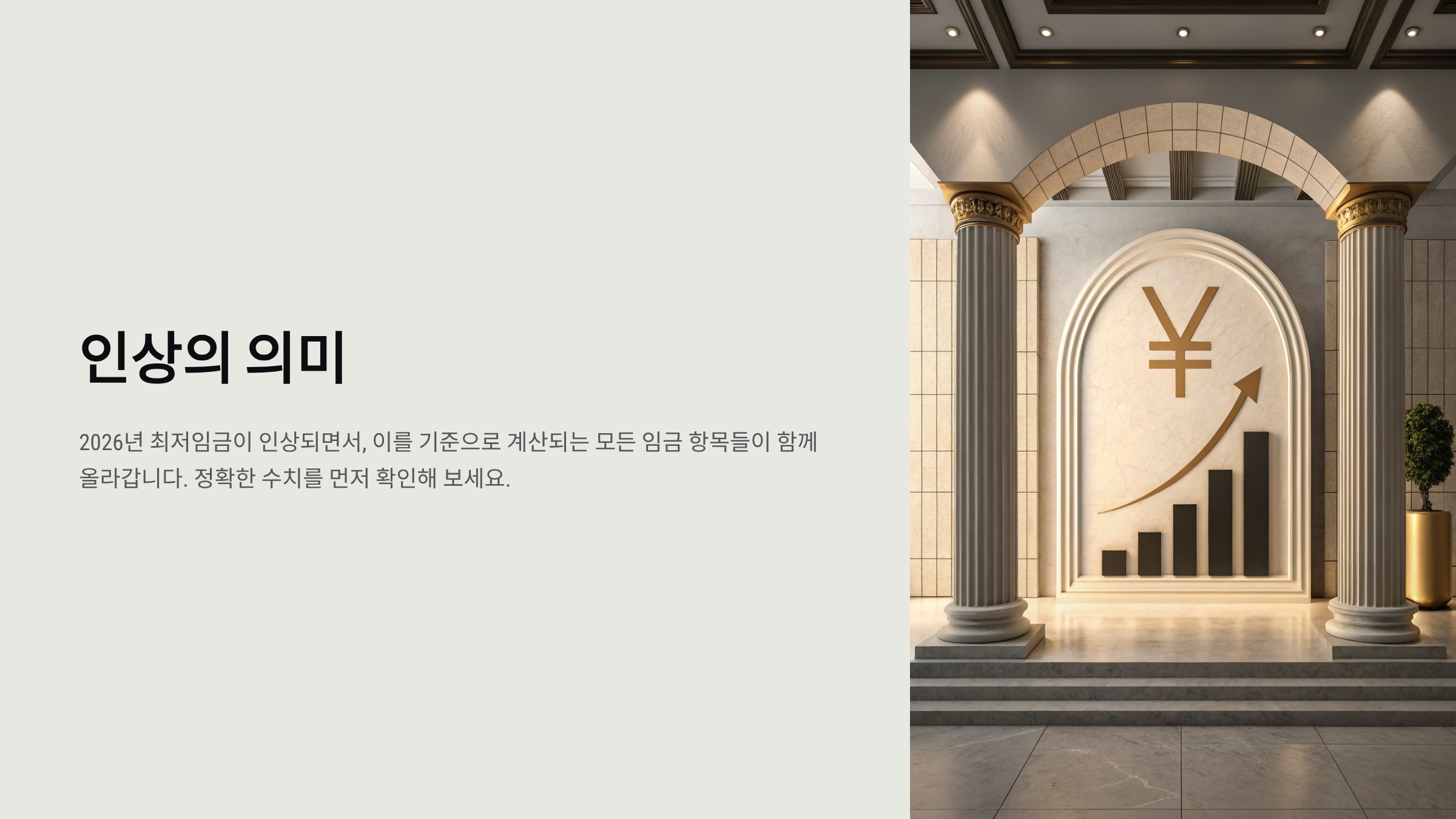 2026년 최저임금이 인상되면서, 이를 기준으로 계산되는 모든 임금 항목들이 함께 올라갑니다. 정확한 수치를 먼저 확인해 보세요.