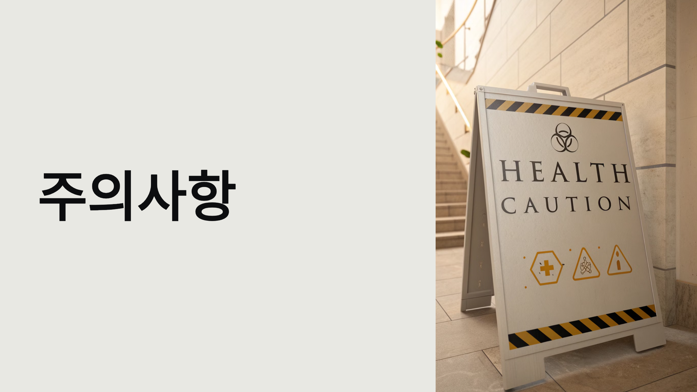 - ✅ 건강 상태 확인: 신장/심장/당뇨 환자는 주의 필요