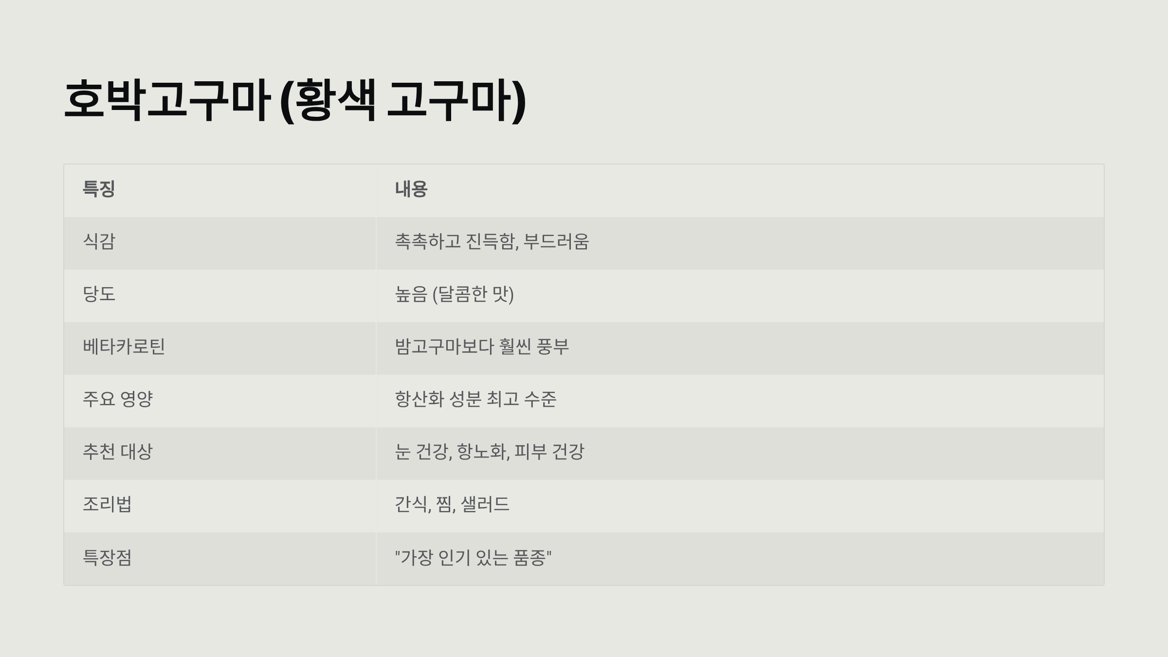 | 베타카로틴 | 밤고구마보다 훨씬 풍부 |