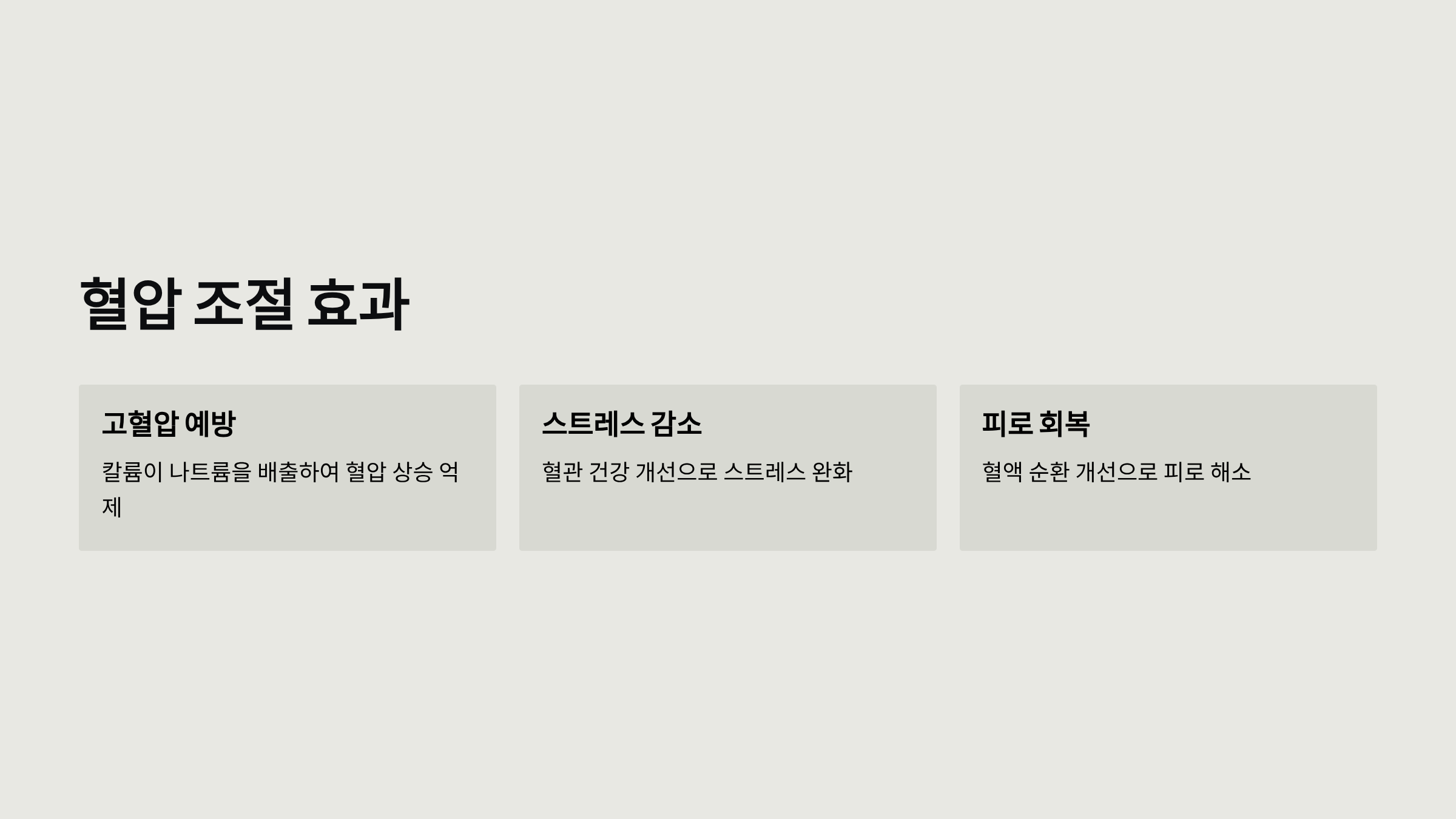 효과: 고혈압 예방은 물론 스트레스 감소와 피로 회복에도 도움