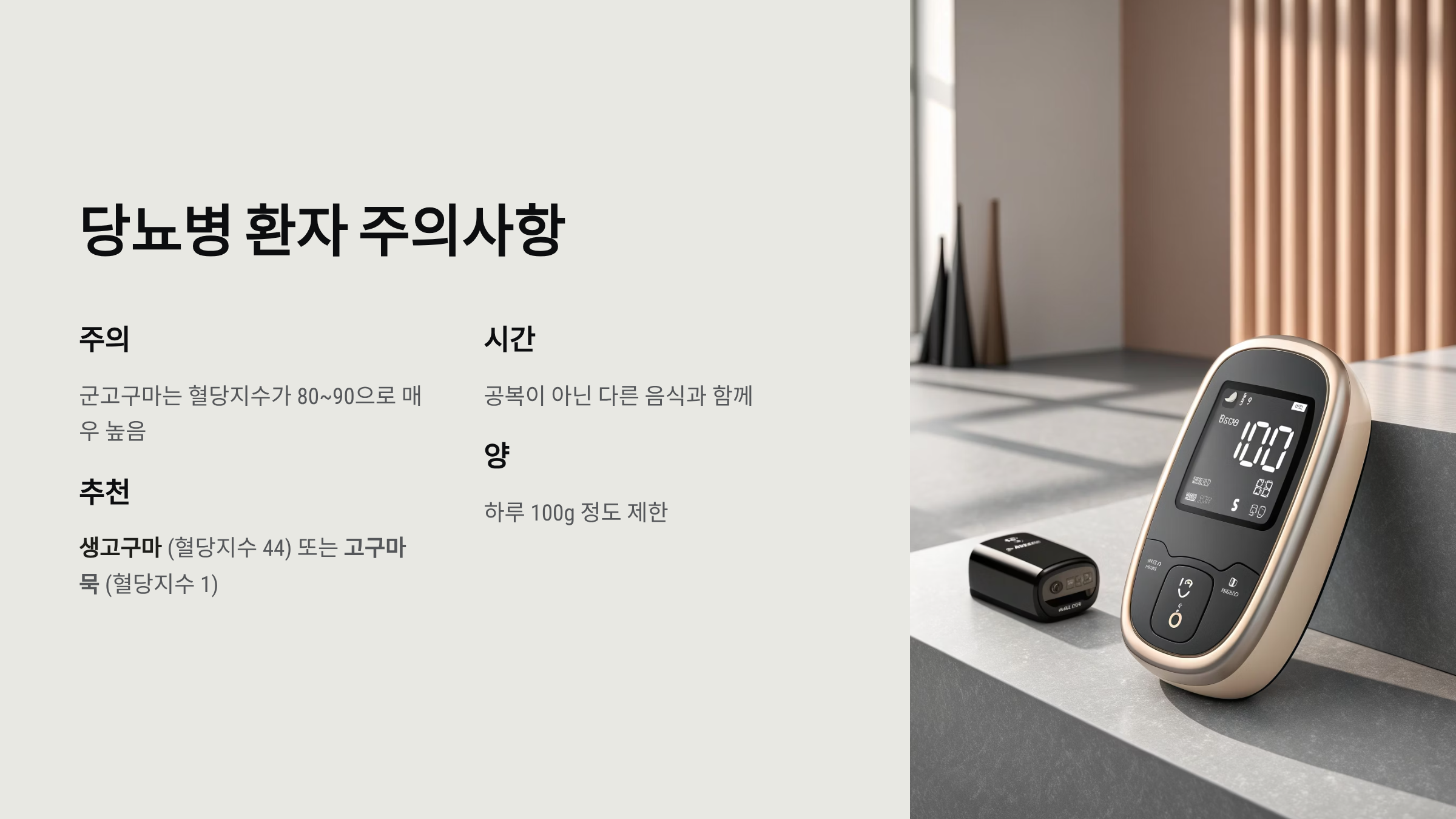 - 주의: 군고구마는 혈당지수가 80~90으로 매우 높음