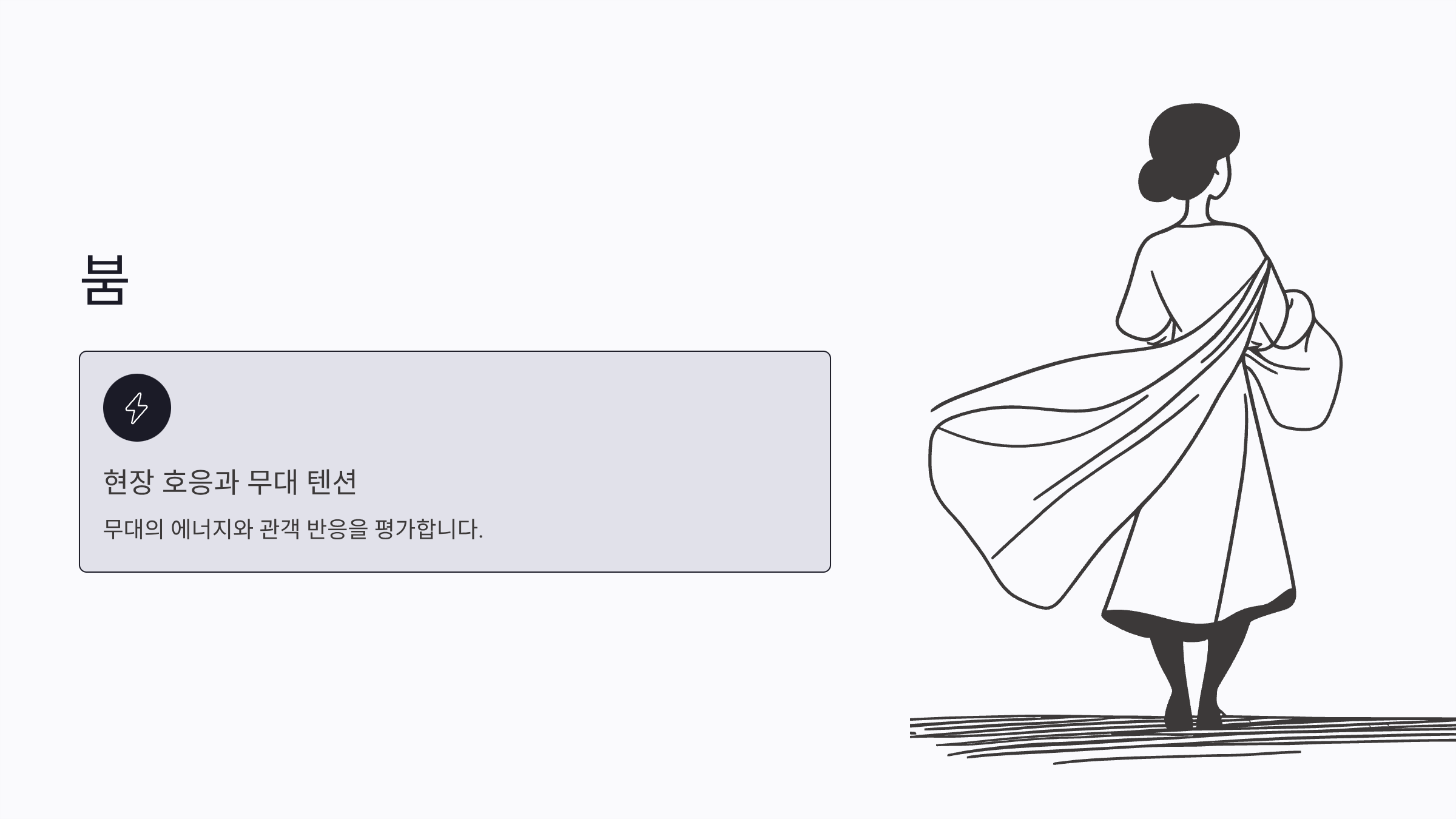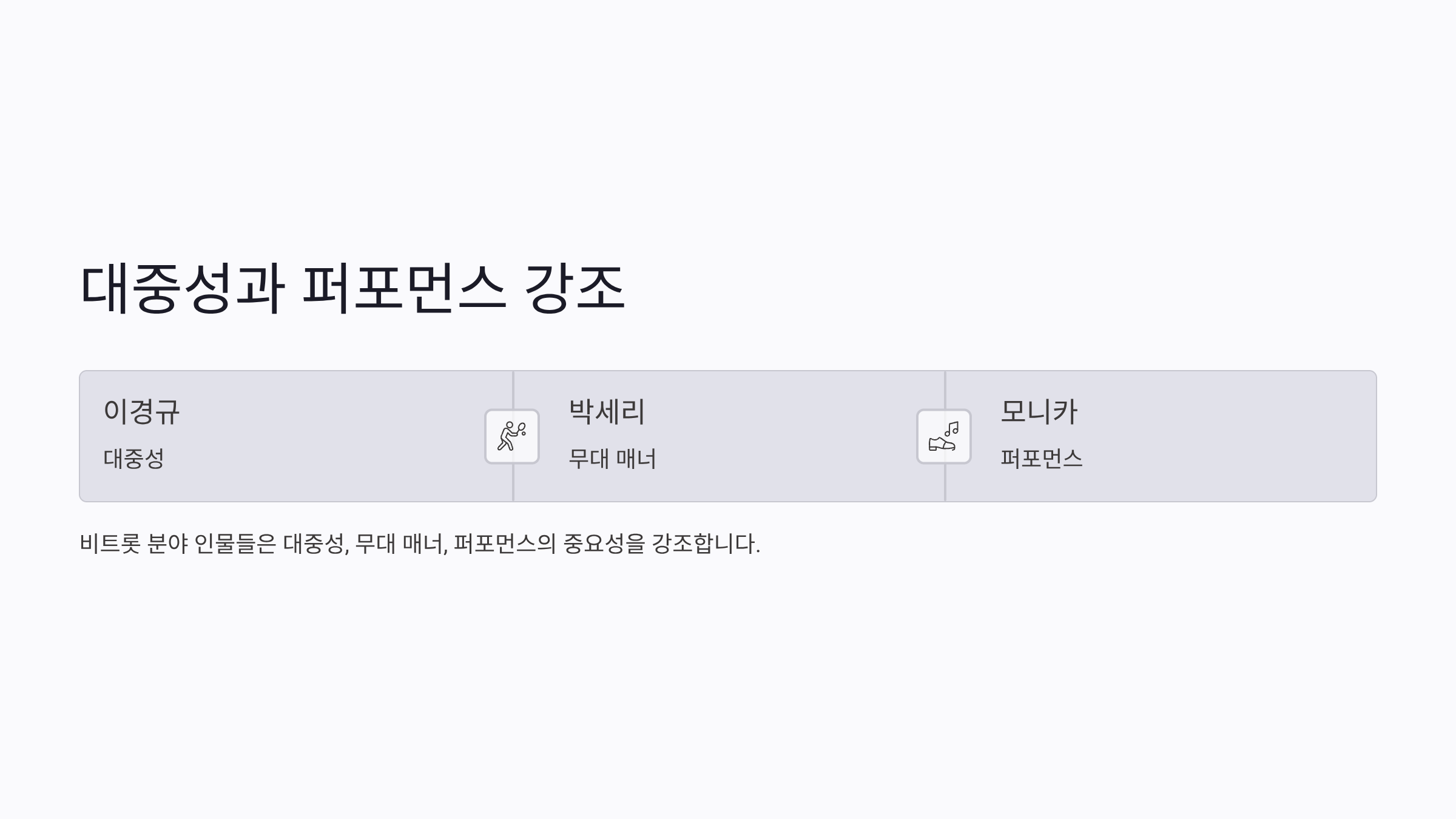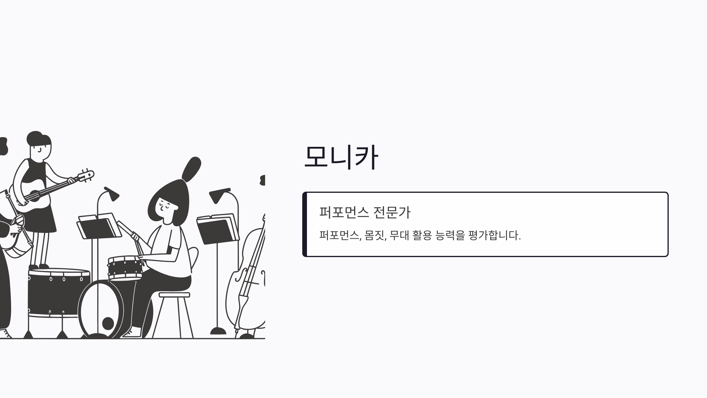모니카: 퍼포먼스, 몸짓, 무대 활용 능력 평가
