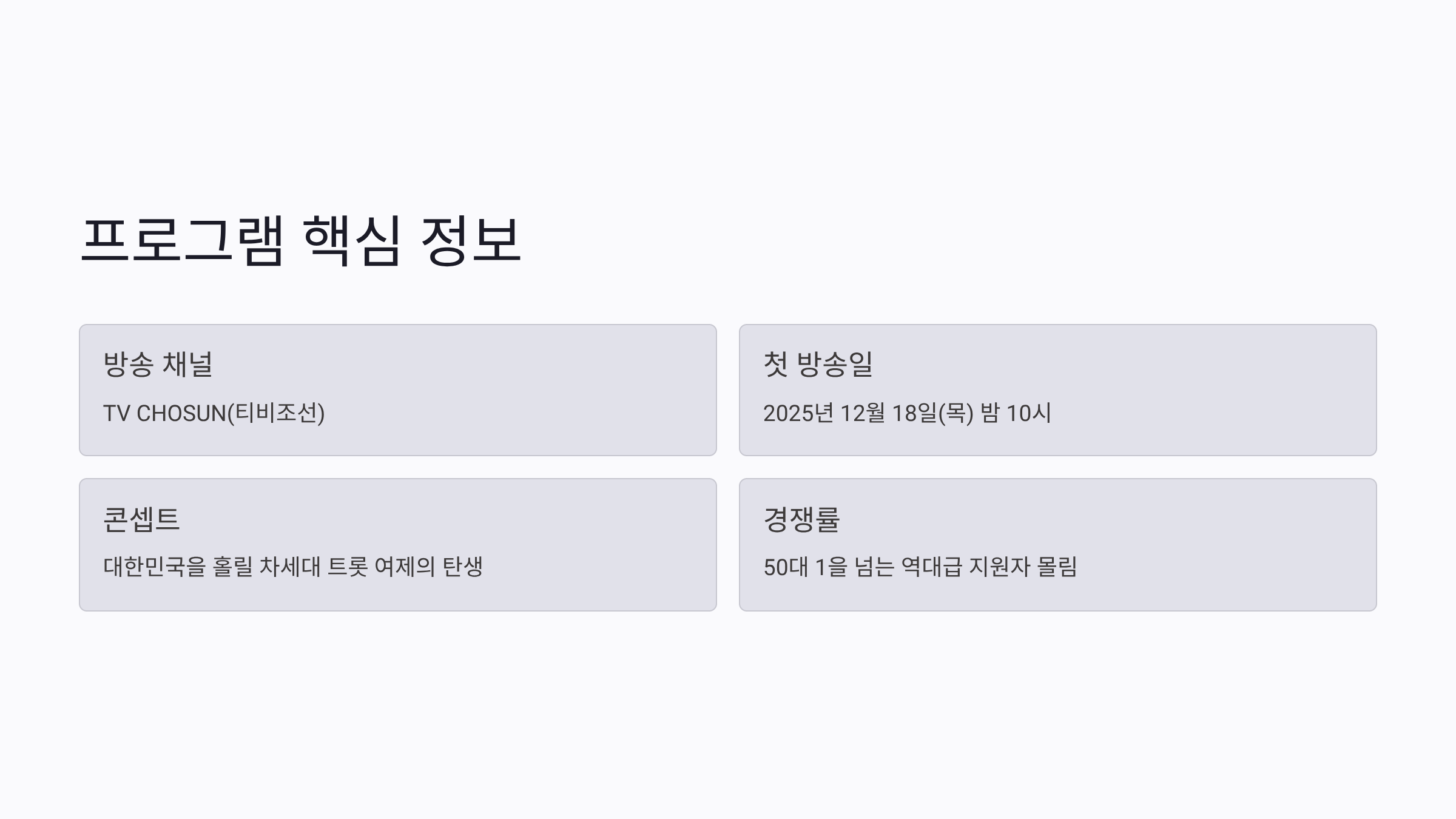 📺 미스트롯4 기본 정보 한눈에 보기
