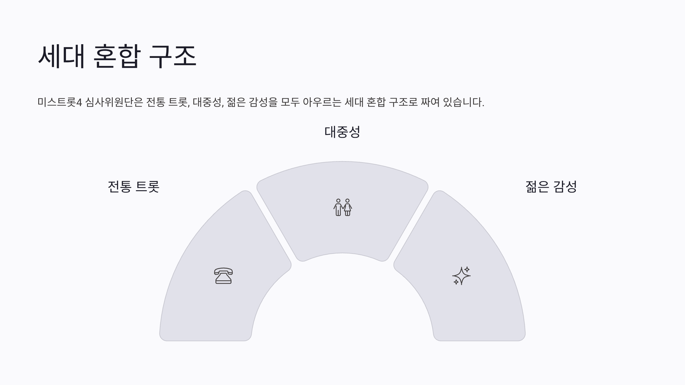 미스트롯4 심사위원단은 전통 트롯, 대중성, 젊은 감성을 모두 아우르는 세대 혼합 구조로 짜여 있습니다.