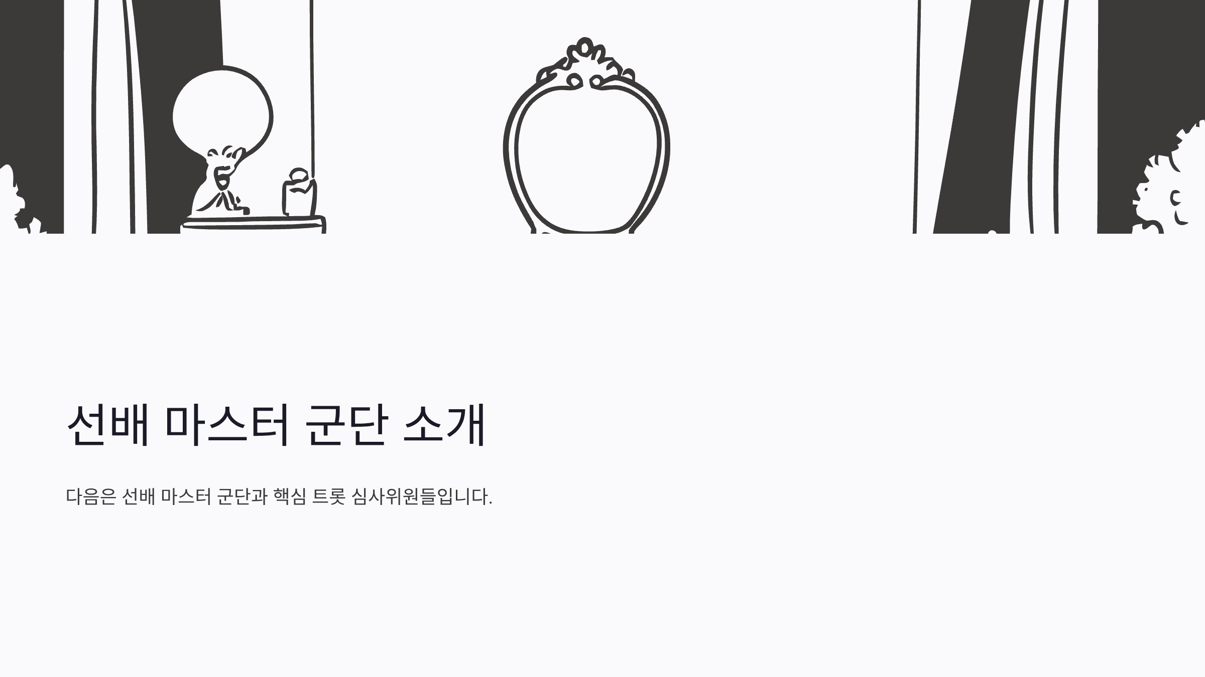 다음은 선배 마스터 군단과 핵심 트롯 심사위원들입니다.