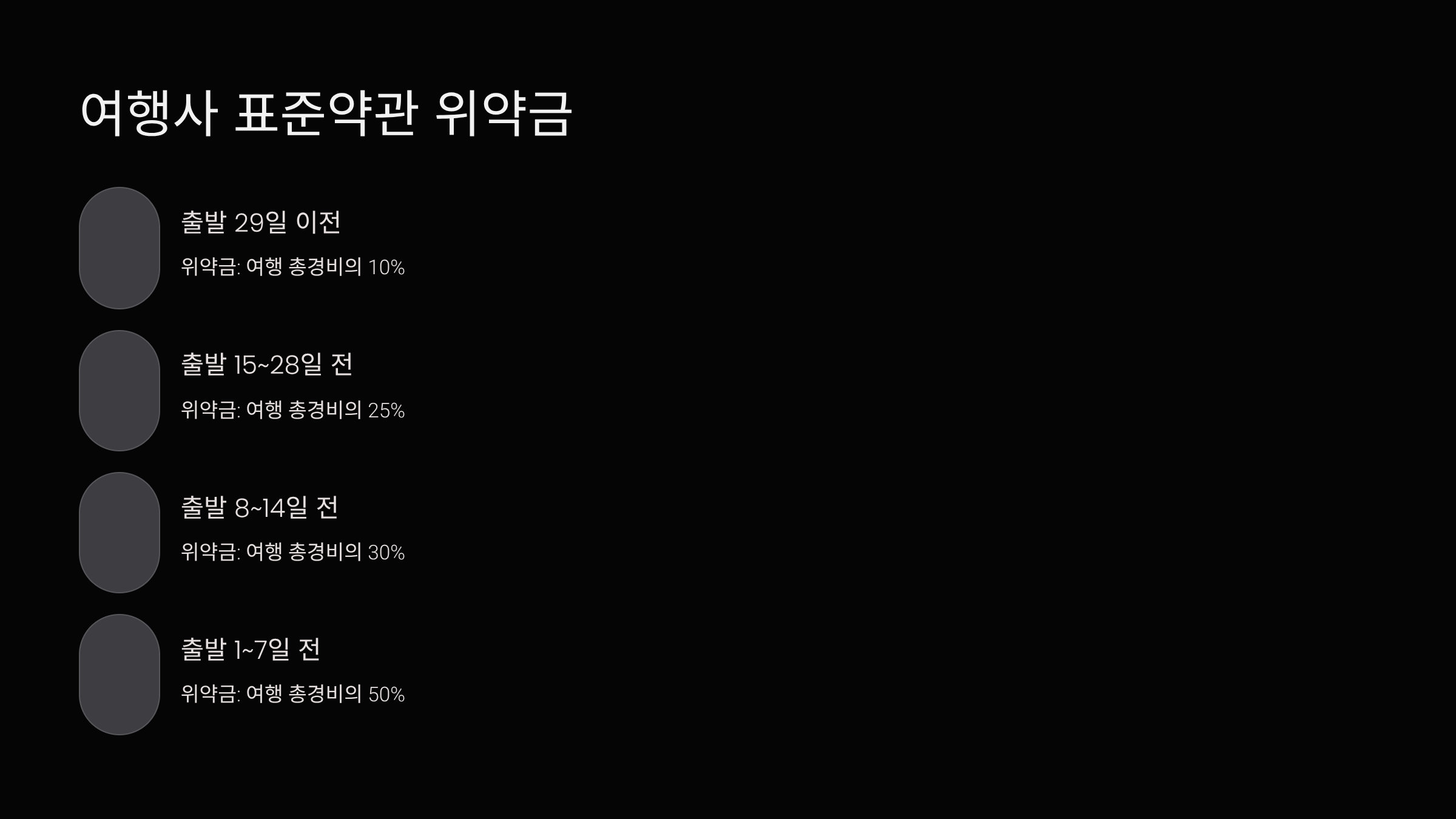 - 위약금: 여행 총경비의 50%