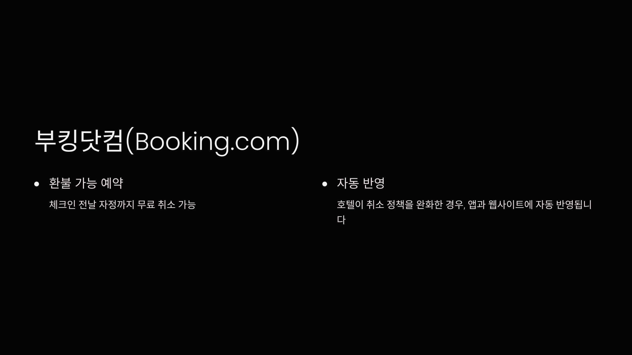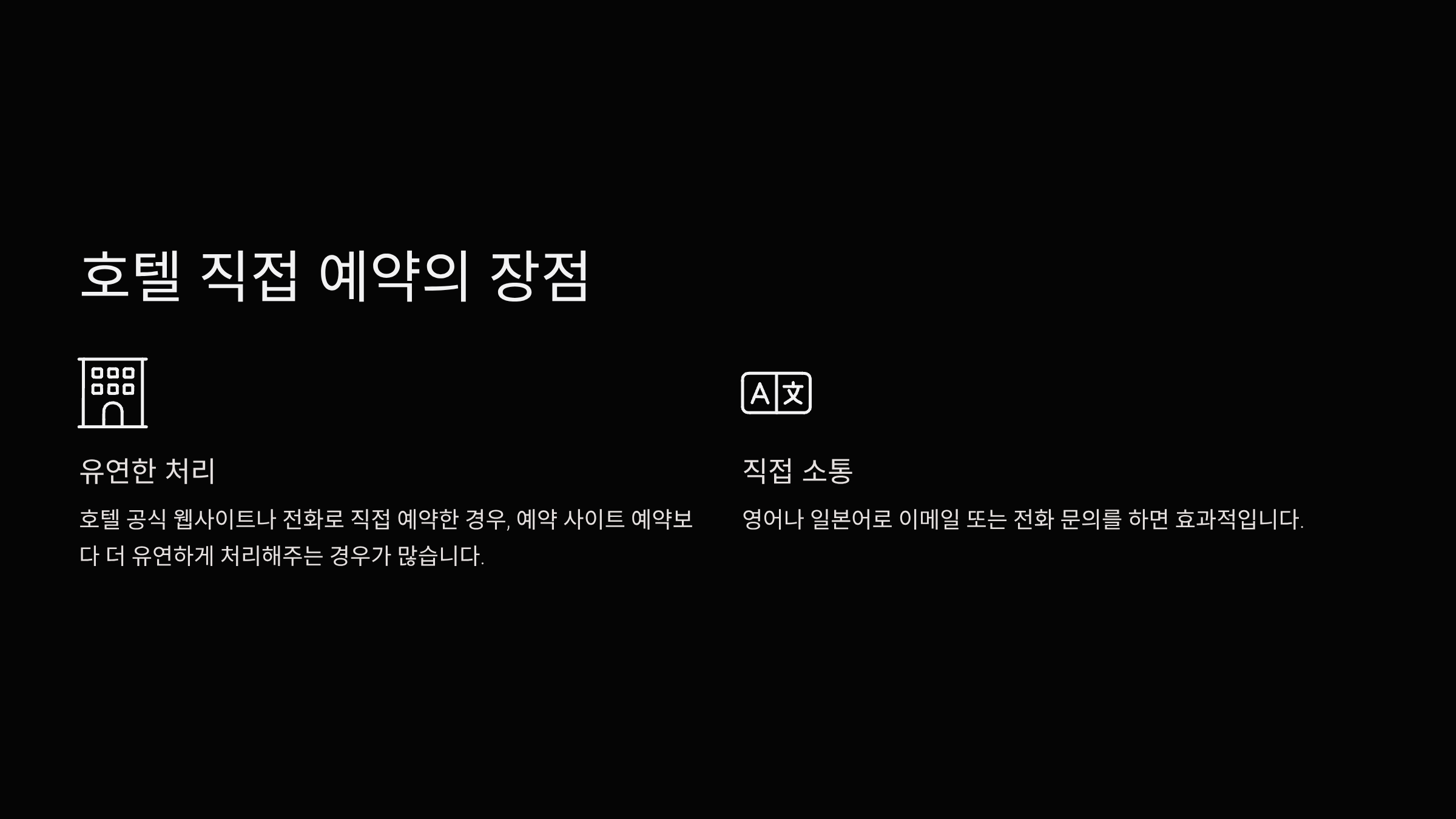 - 호텔 직접 예약 시 더 유연한 처리 가능