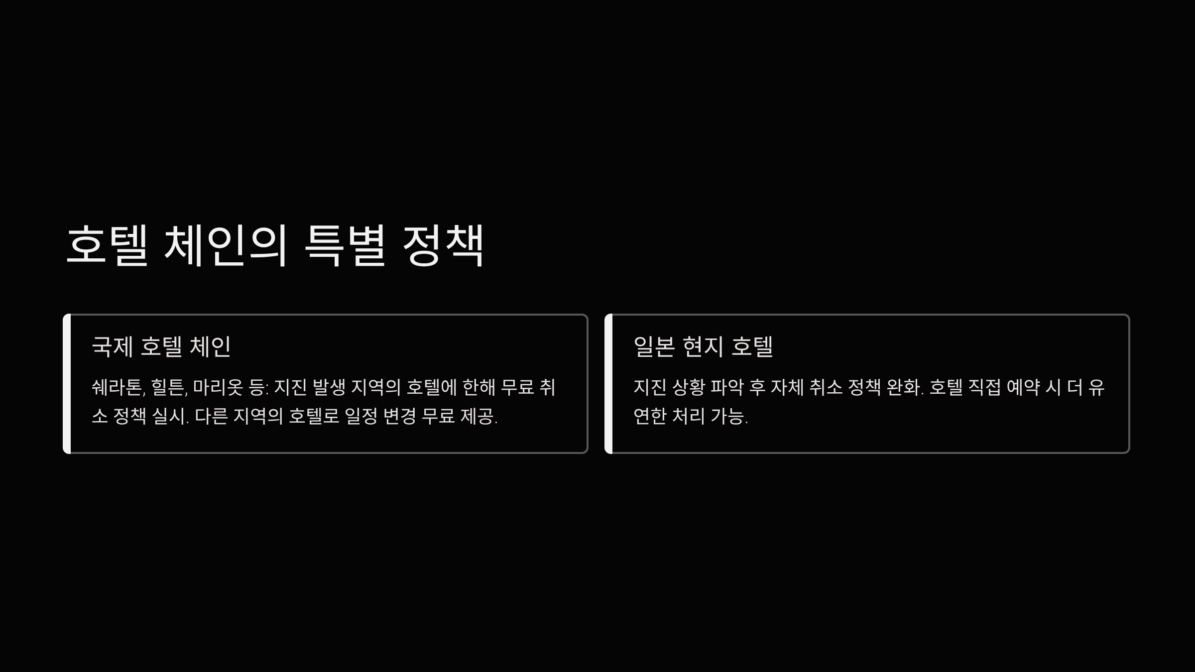 - 지진 발생 이후 취소 정책을 일시적으로 완화하는 호텔들도 있습니다