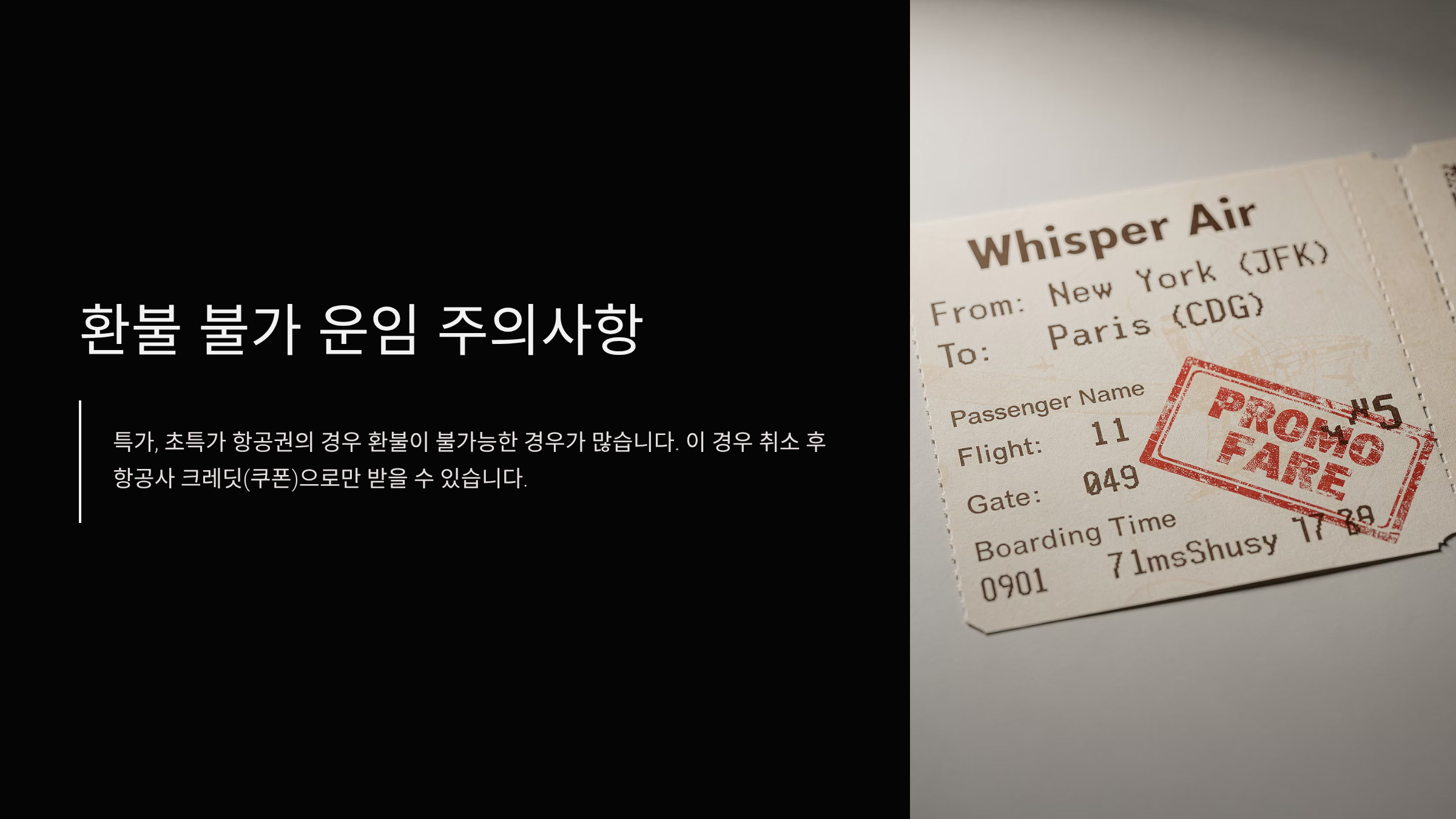 - 특가, 초특가 항공권의 경우 환불이 불가능한 경우가 많습니다