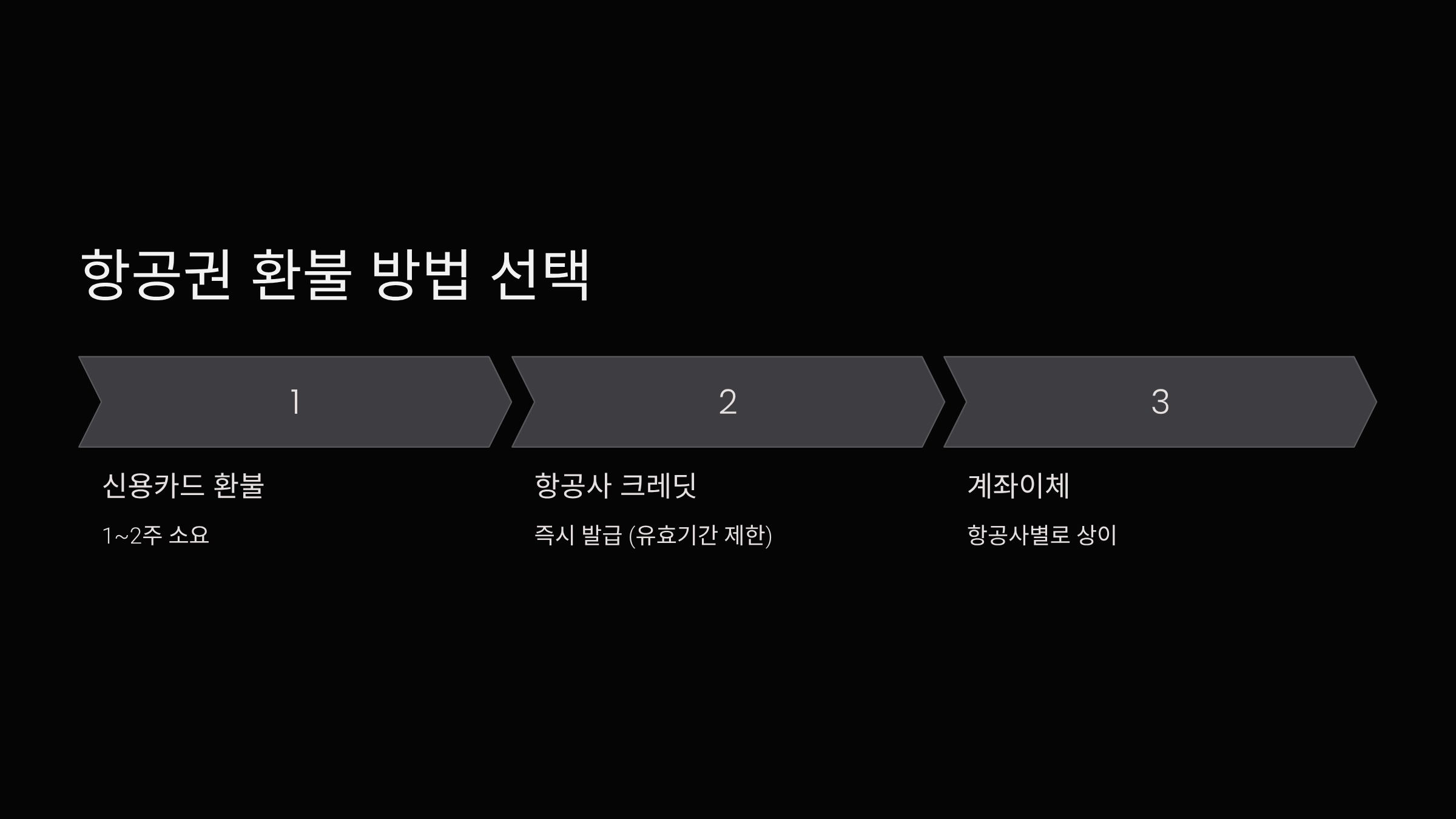 - 항공사 크레딧: 즉시 발급 (유효기간 제한 있음)