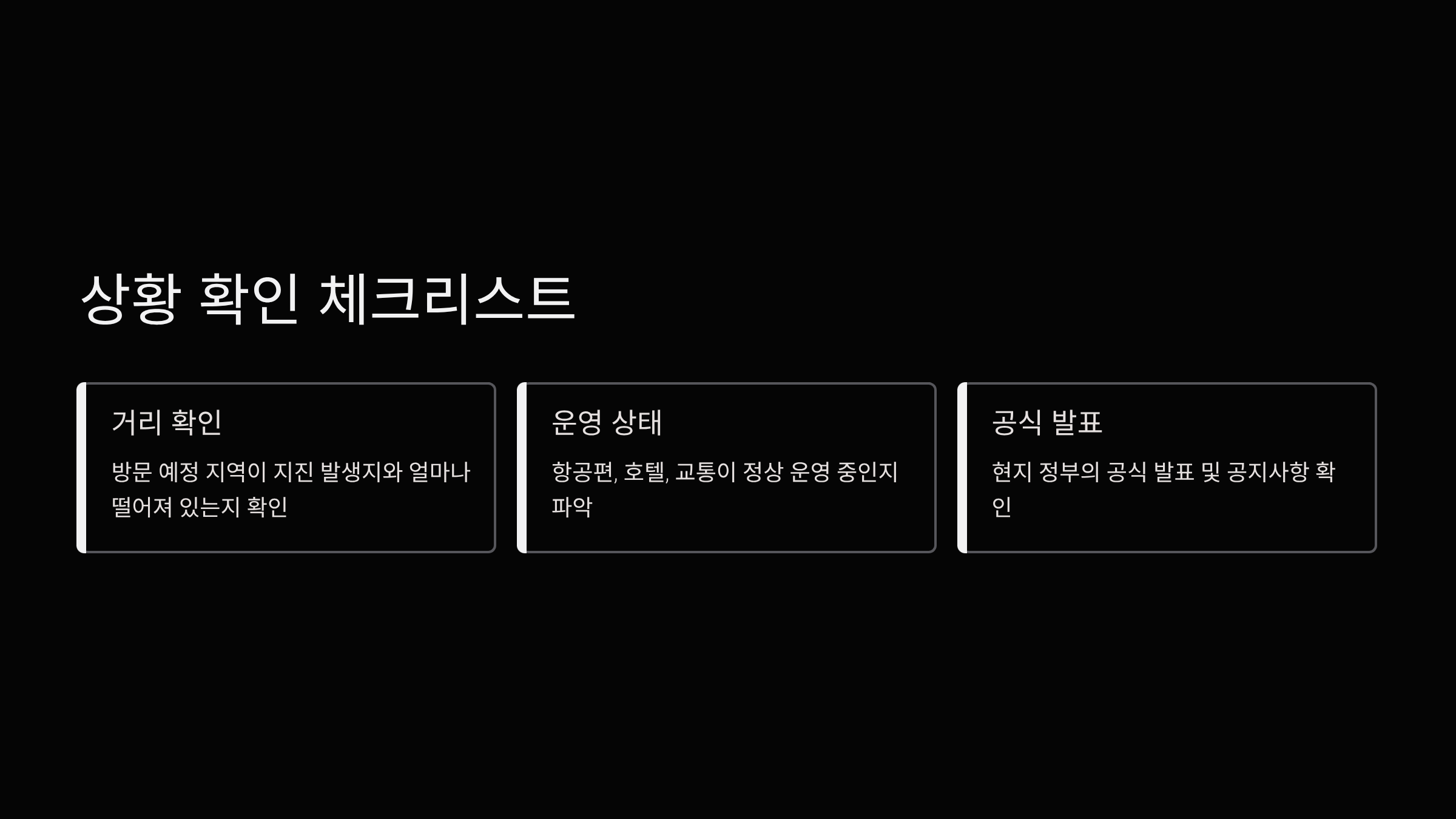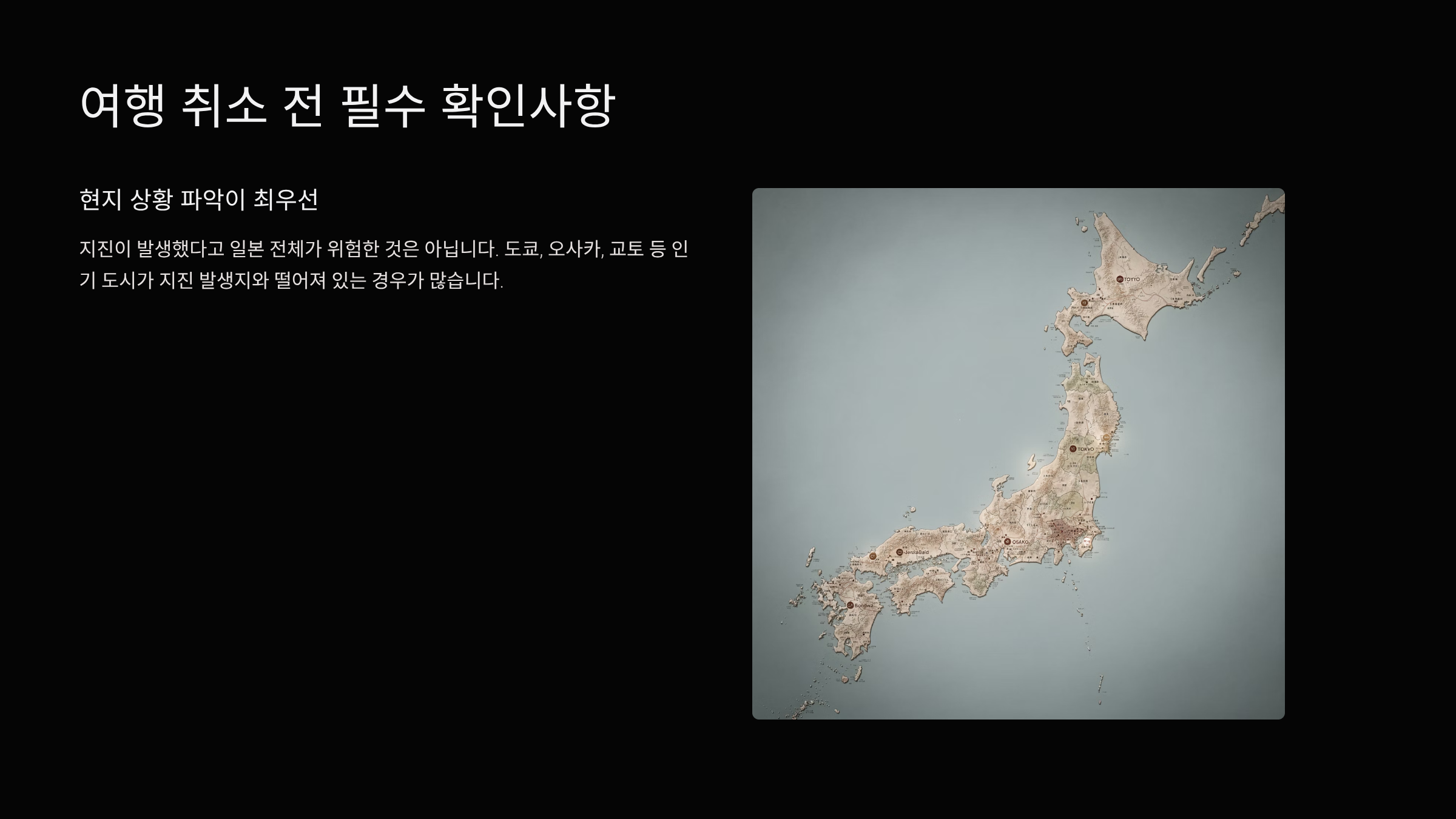 - 여행 예정지가 지진 발생 지역과 멀리 떨어져 있음