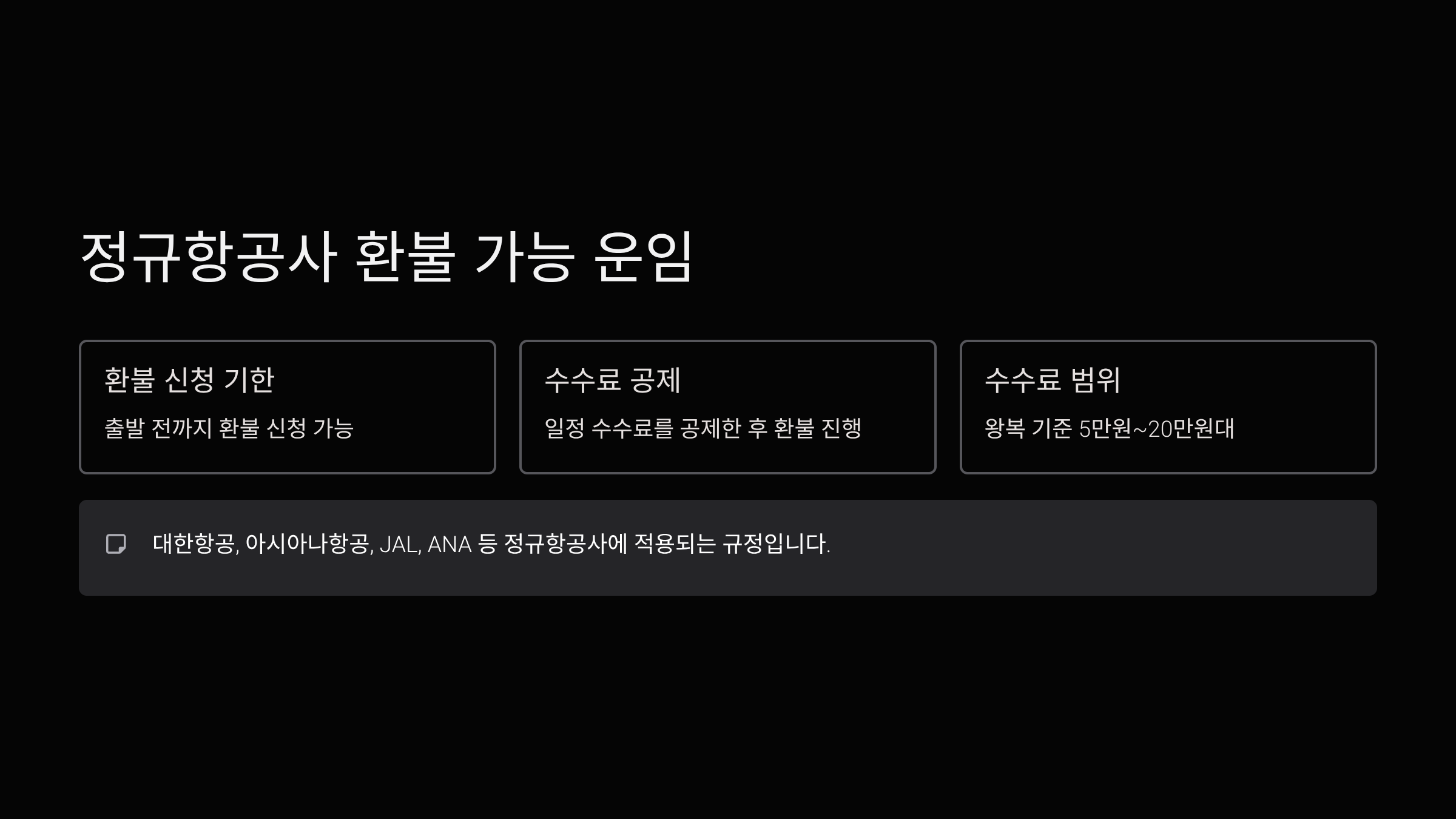 정규항공사의 환불 규정 (대한항공, 아시아나항공, JAL, ANA 등)
