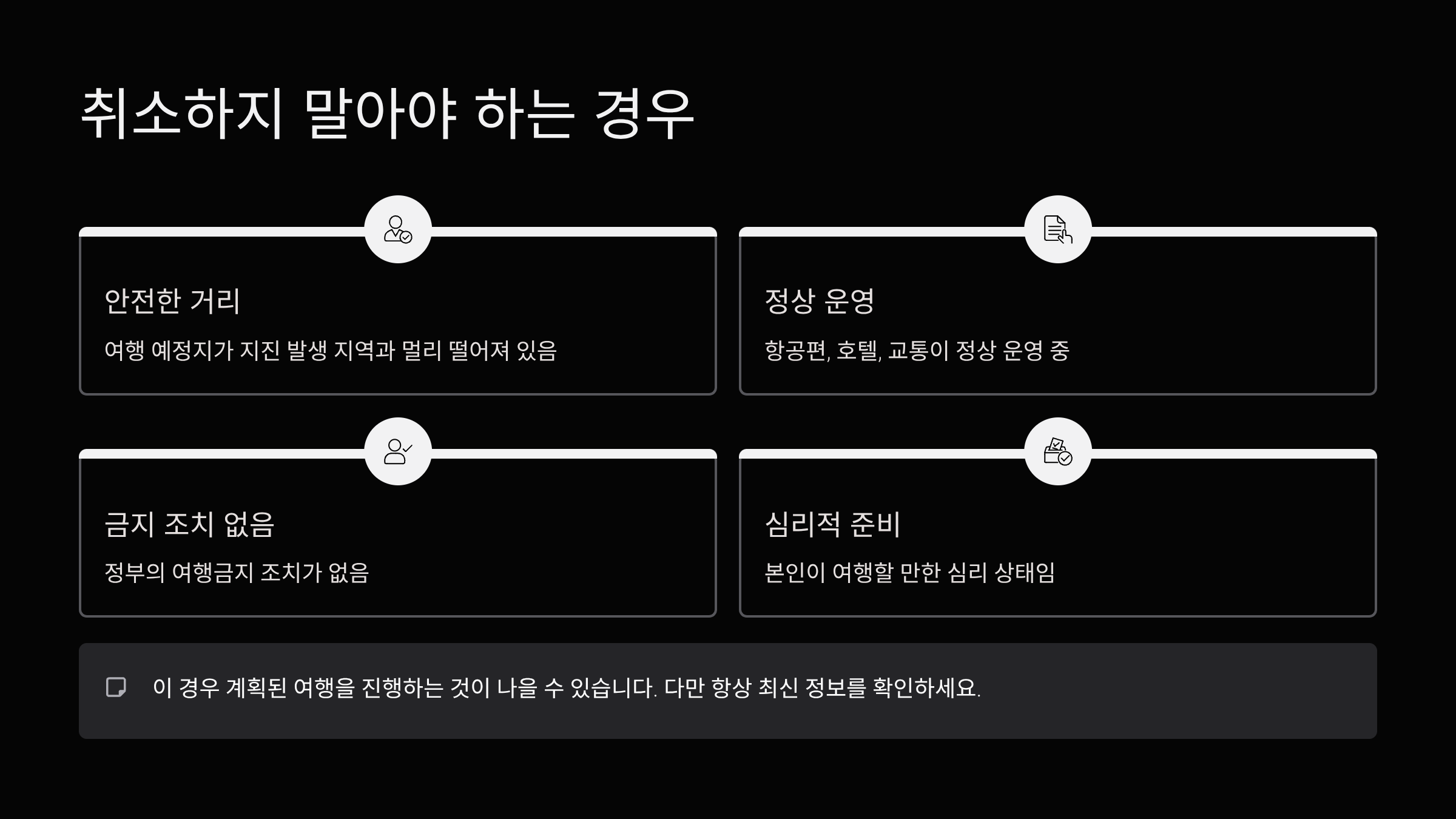 여행을 취소하기 전에 다음의 공식 정보를 반드시 확인하세요: