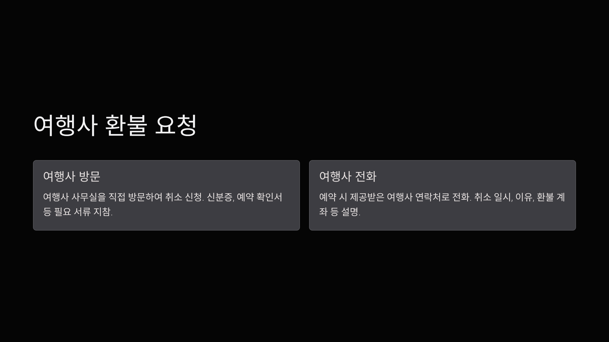 - 여행사에 전화 또는 방문하여 취소 의사를 전달합니다