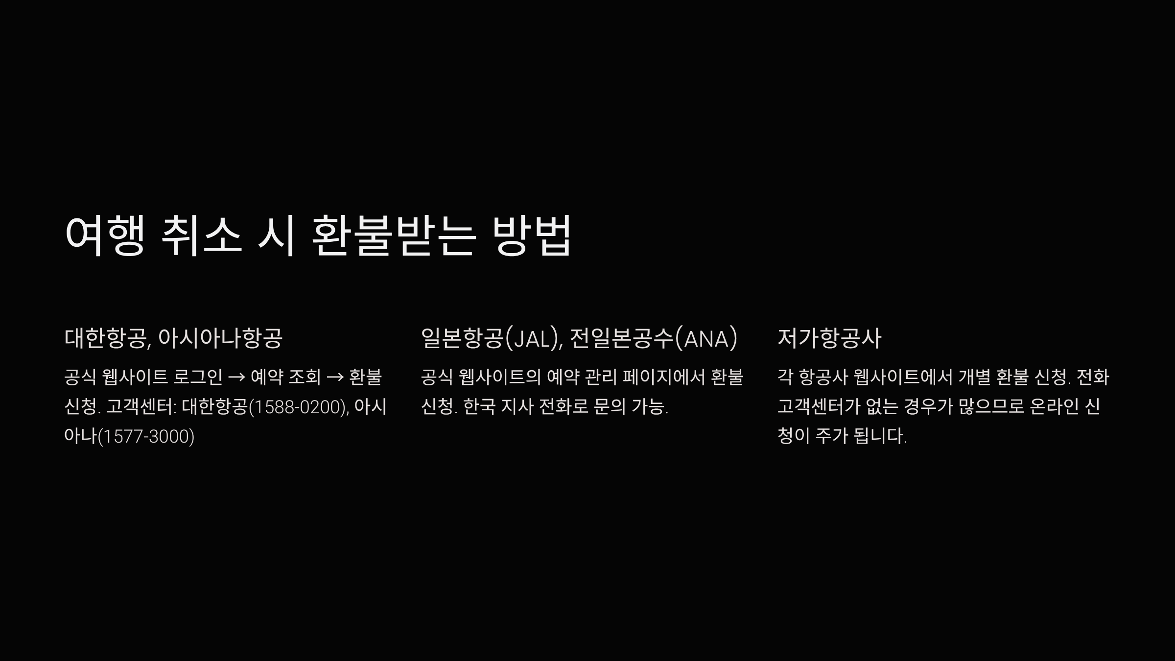 - 각 항공사 웹사이트에서 개별 환불 신청