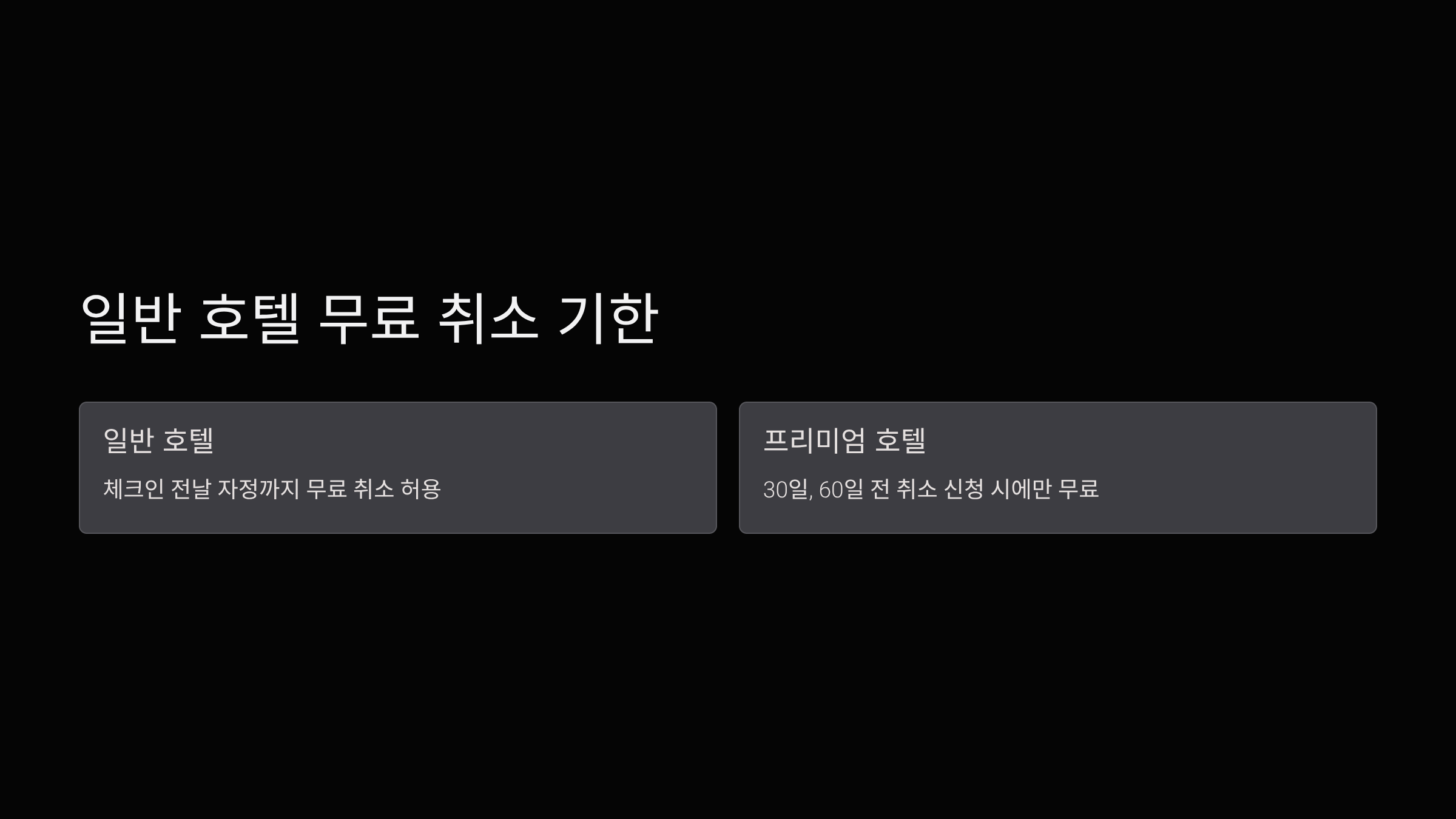 - 일부 프리미엄 호텔은 30일, 60일 전 취소 신청 시에만 무료입니다