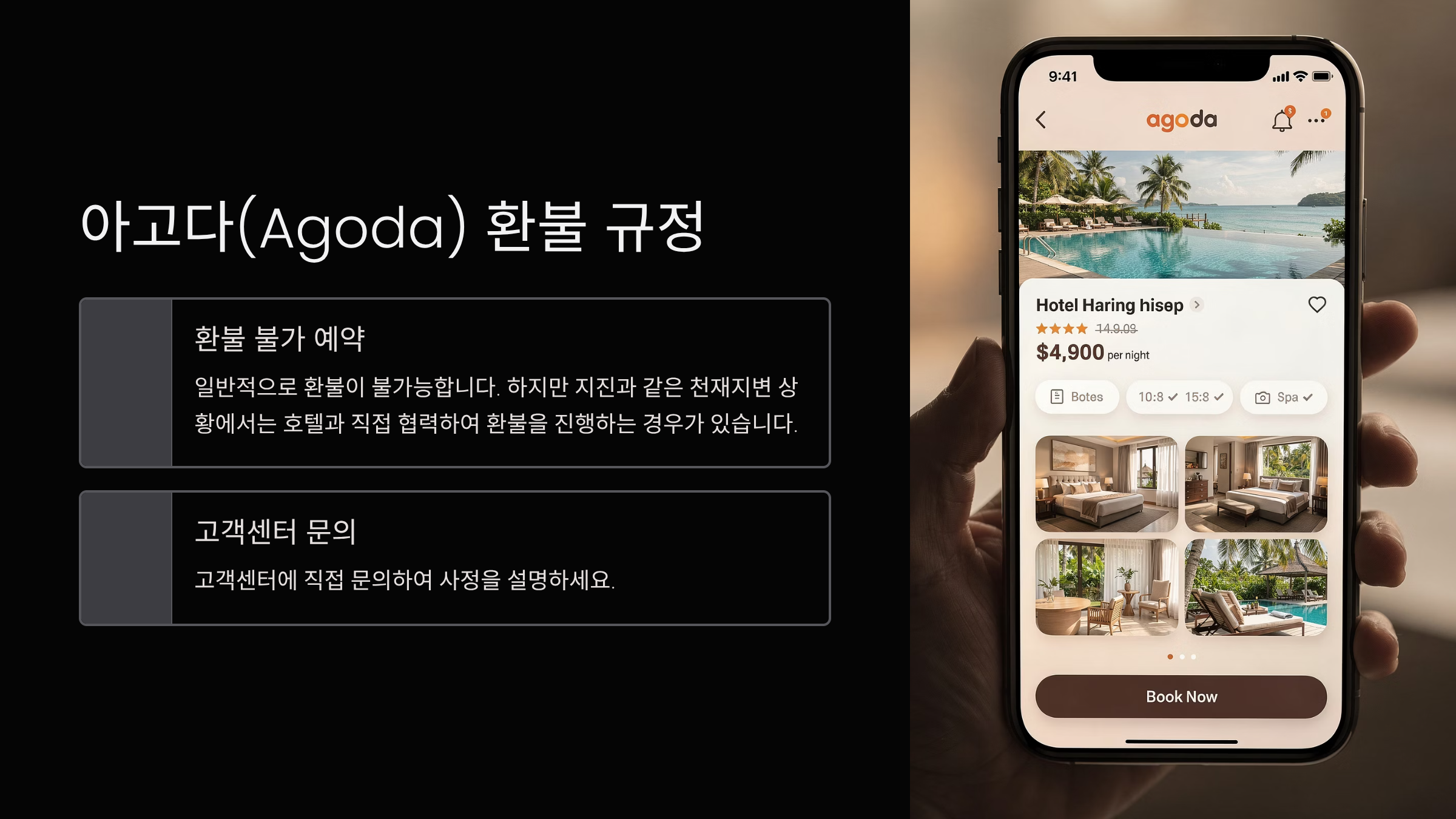 - 호텔이 취소 정책을 완화한 경우, 앱과 웹사이트에 자동 반영됩니다
