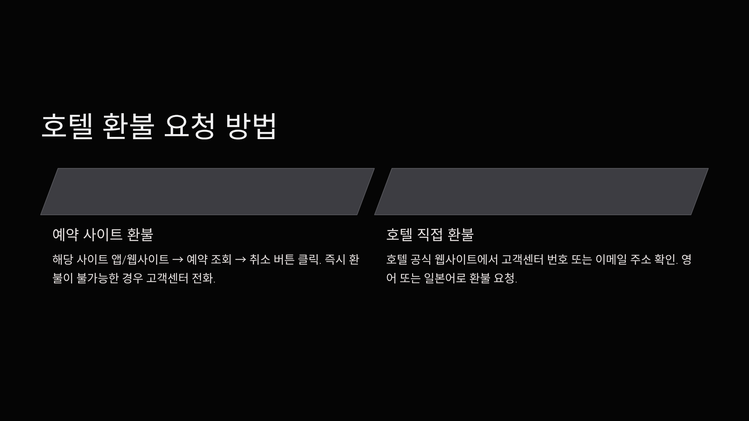- 환불 불가로 예약한 경우: 일반적으로 환불이 불가능합니다
