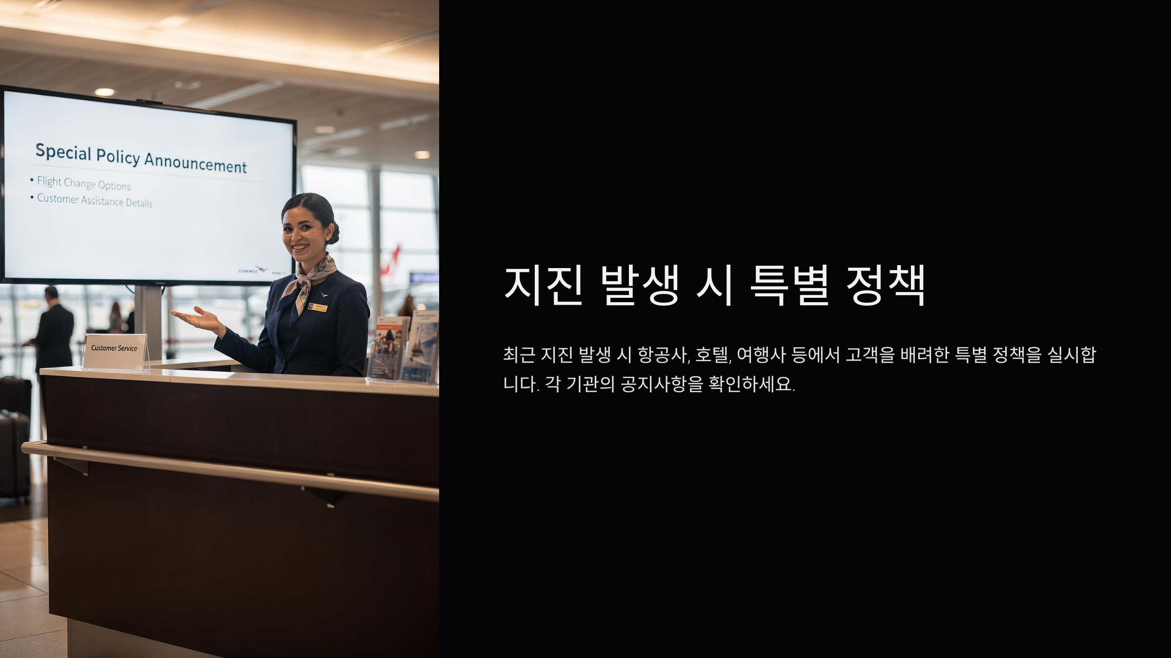 최근 지진 발생 시 항공사, 호텔, 여행사 등에서 고객을 배려한 특별 정책을 실시합니다.