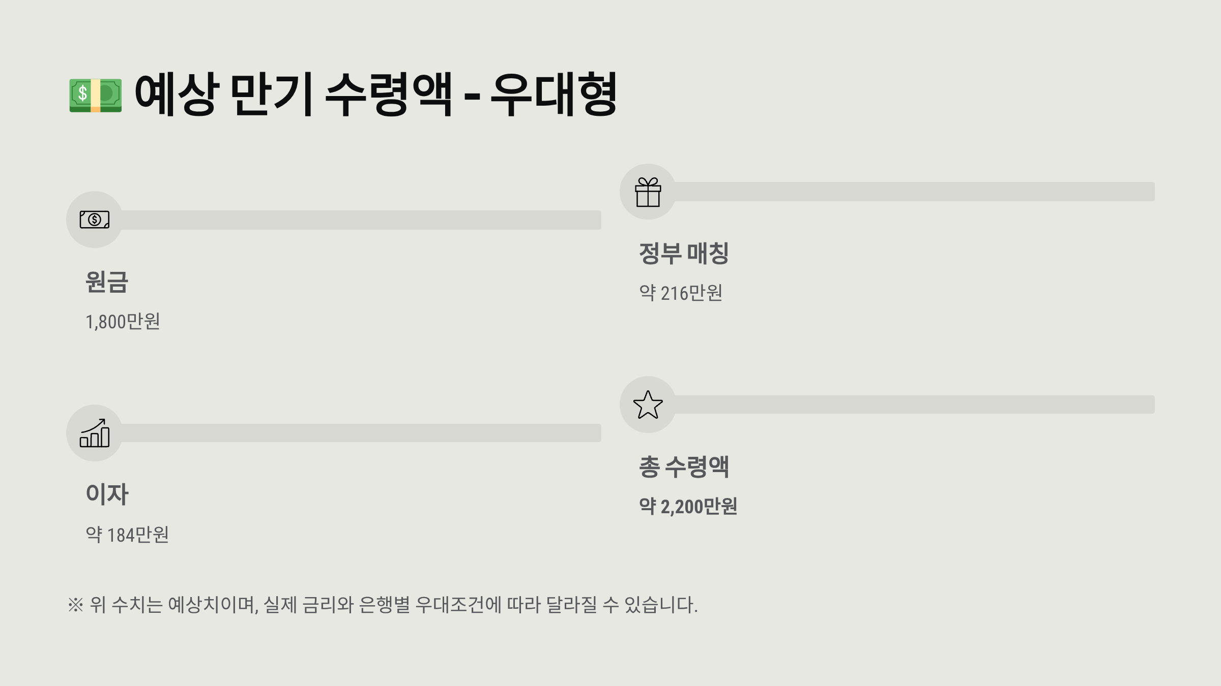 - 월 50만원 납입 시: 월 3만원의 정부 매칭