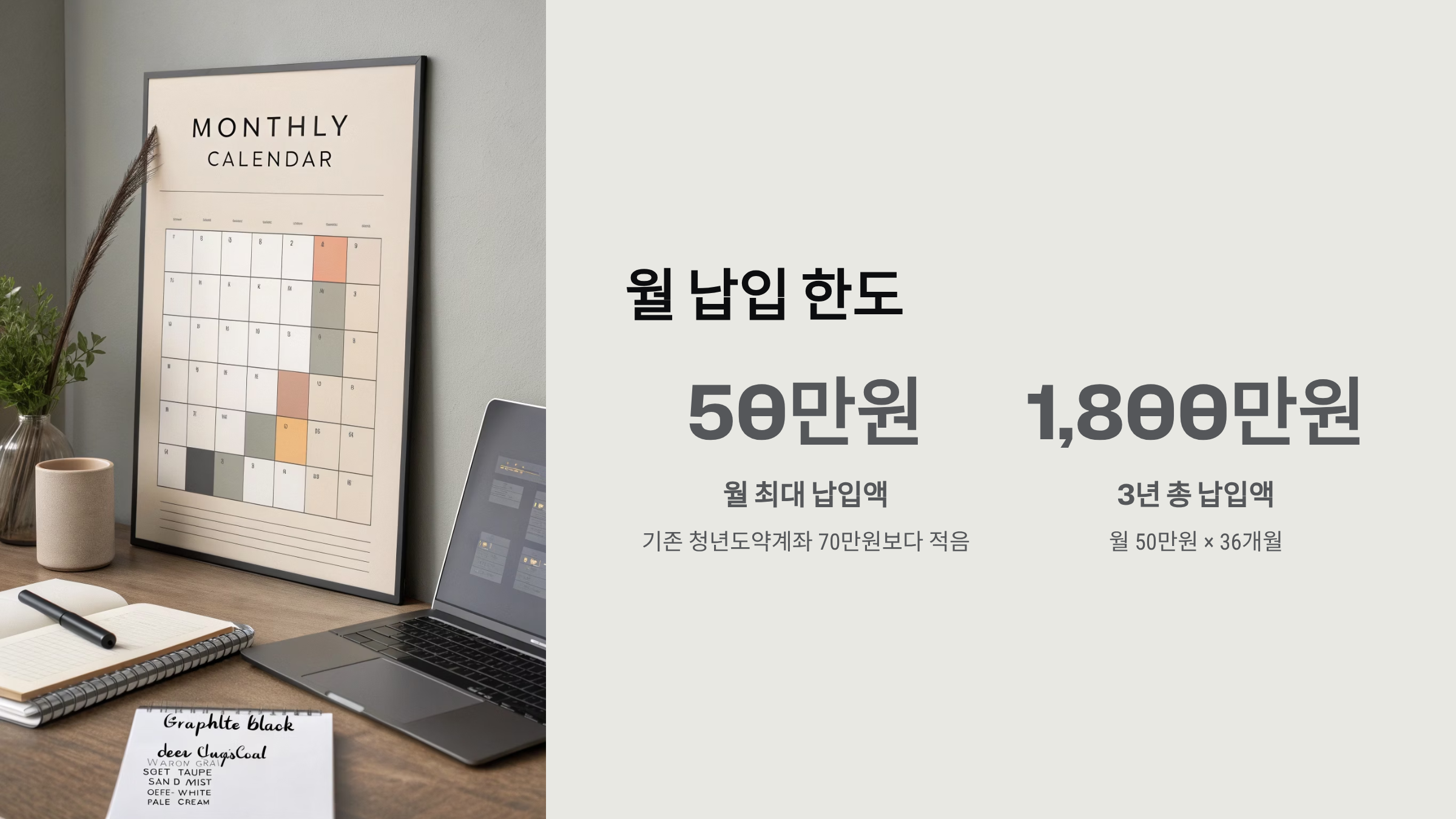 - 기존 청년도약계좌(월 70만원)보다 적음