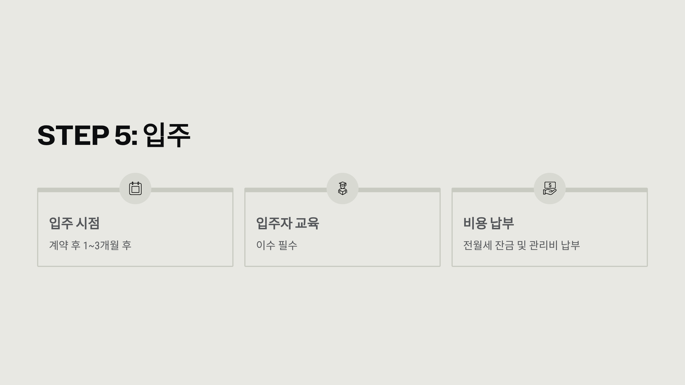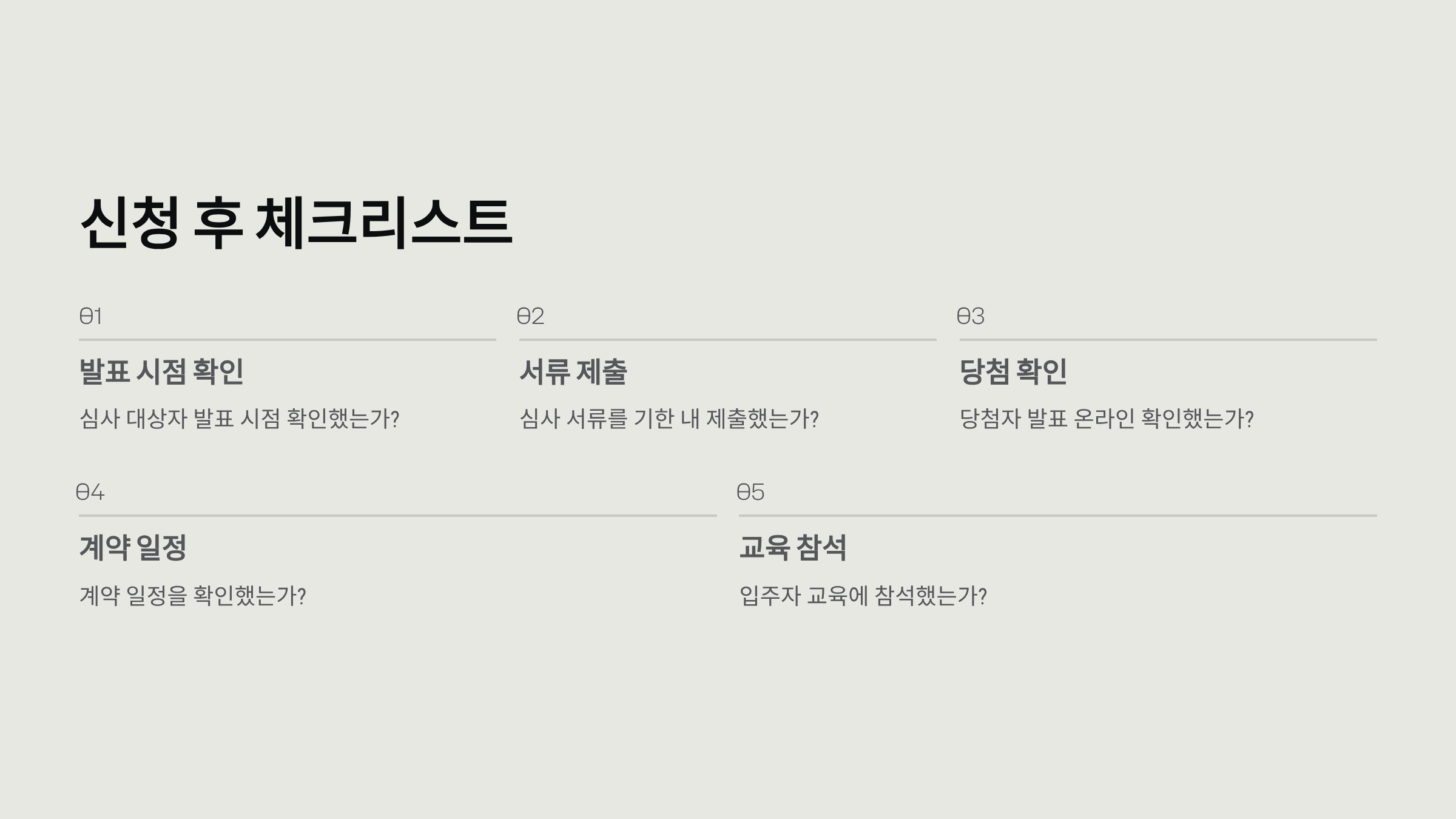 - 입주 후 주택 구매: 재계약 불가능 (별도 지원 필요)
