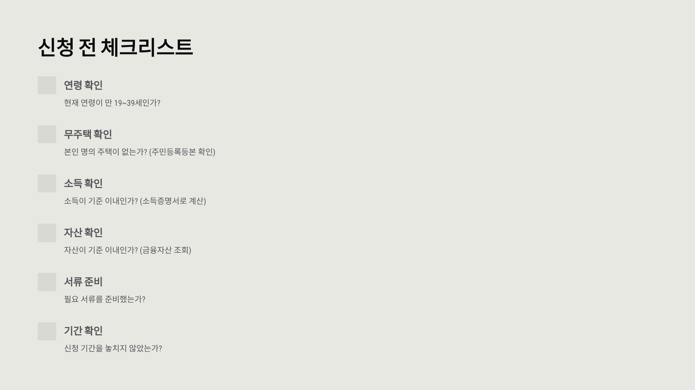 - 신혼부부: 혼인관계증명서로 확인 (일부 프로그램에서는 연령 예외 가능)