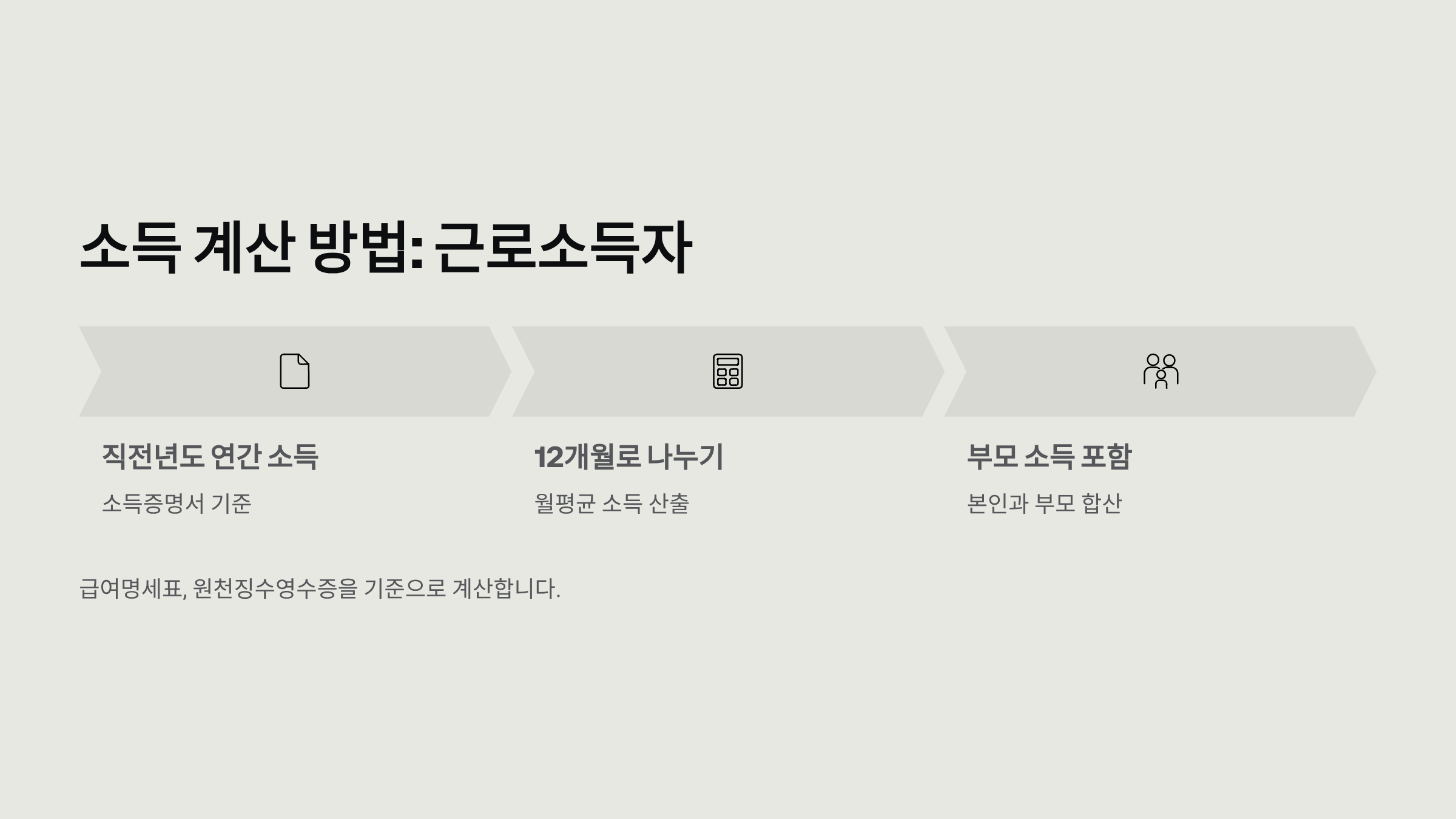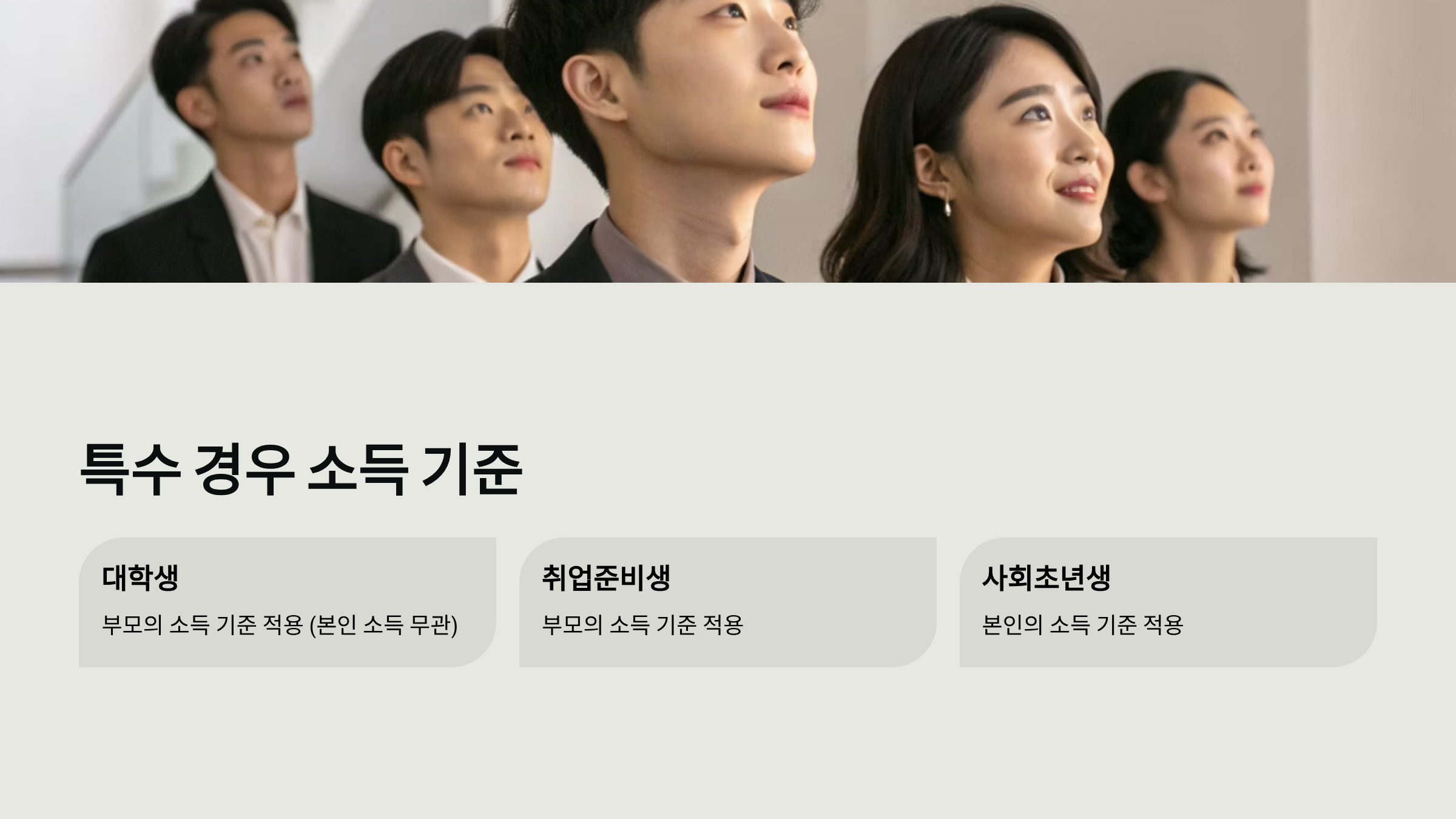 - 대학생: 부모의 소득 기준 적용 (본인 소득 무관)