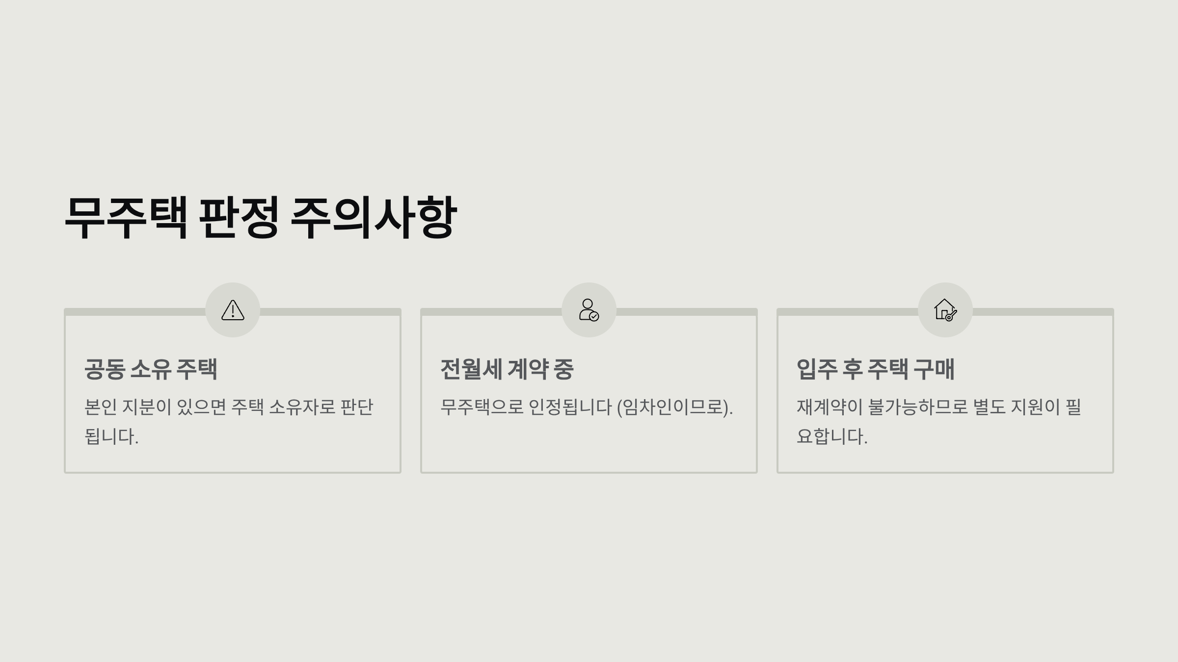 - 공동 소유 주택: 본인 지분이 있으면 주택 소유자로 판단
