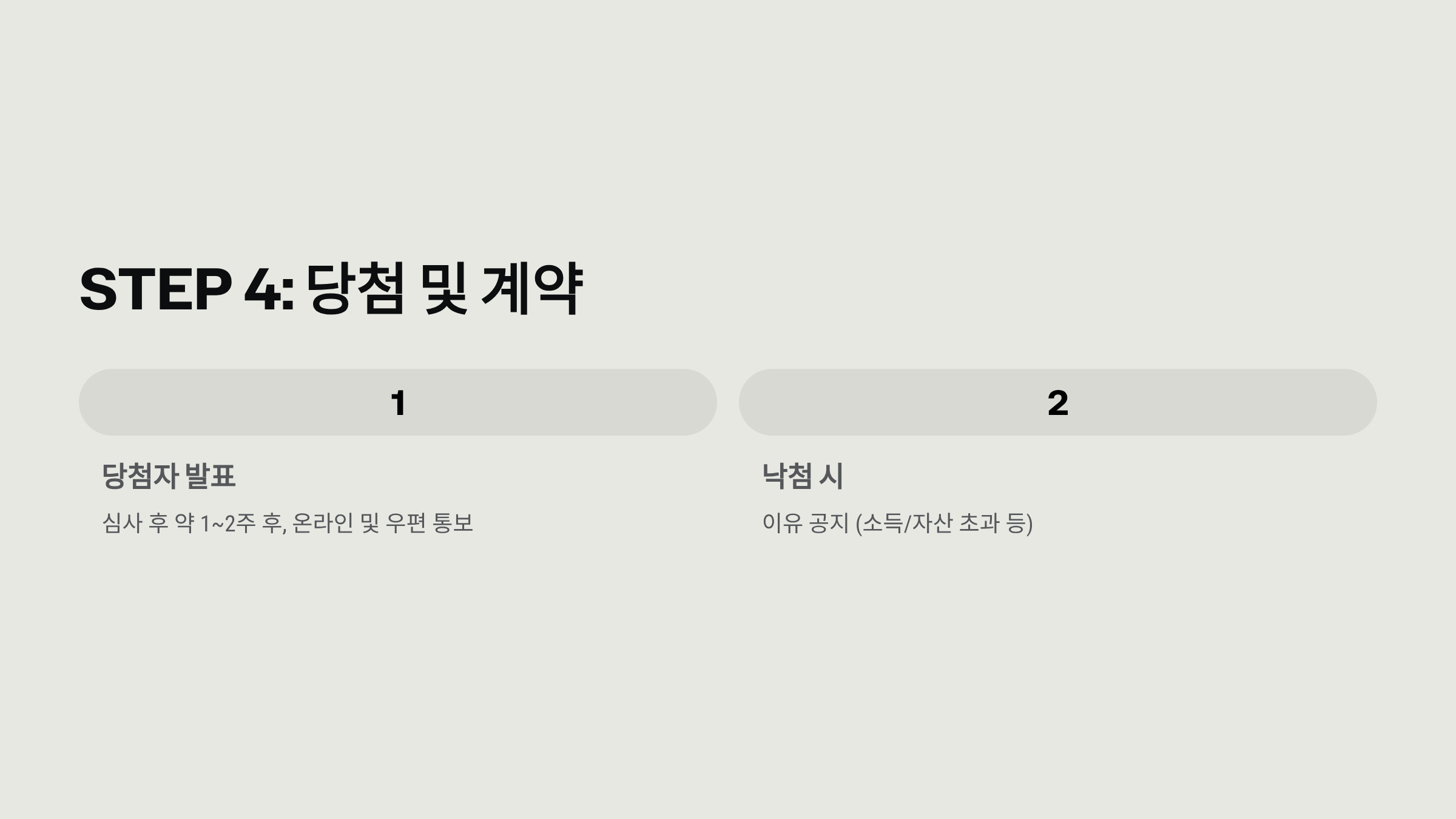 - 낙첨 시 이유 공지 (소득/자산 초과 등)