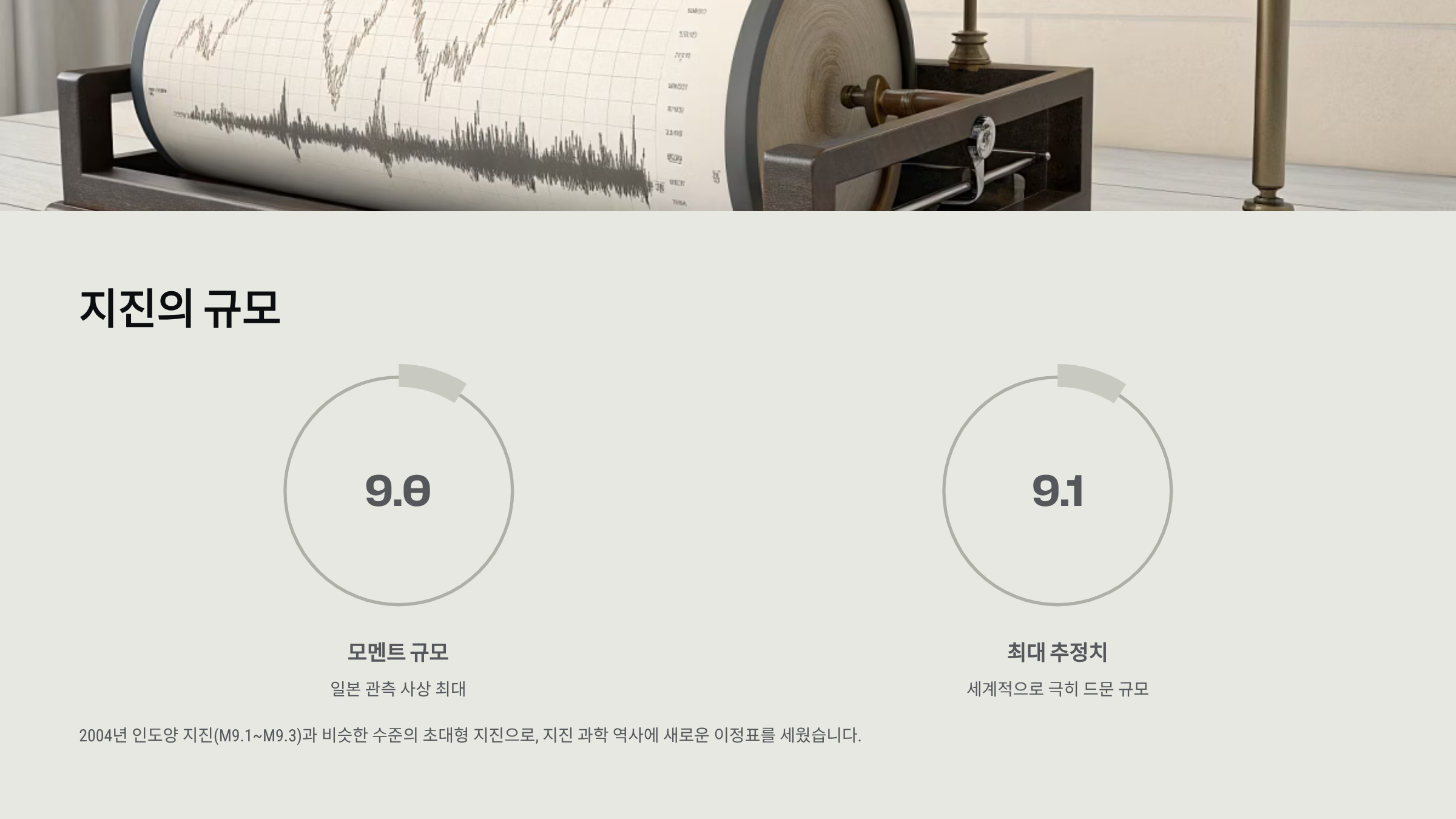 - 기존 기록: 2004년 인도양 지진 (M9.1 ~ M9.3)