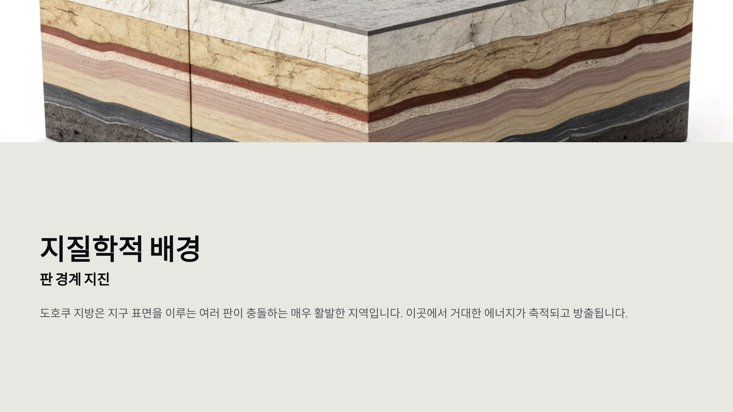 도호쿠 지방은 지구 표면을 이루는 여러 판이 충돌하는 매우 활발한 지역입니다.