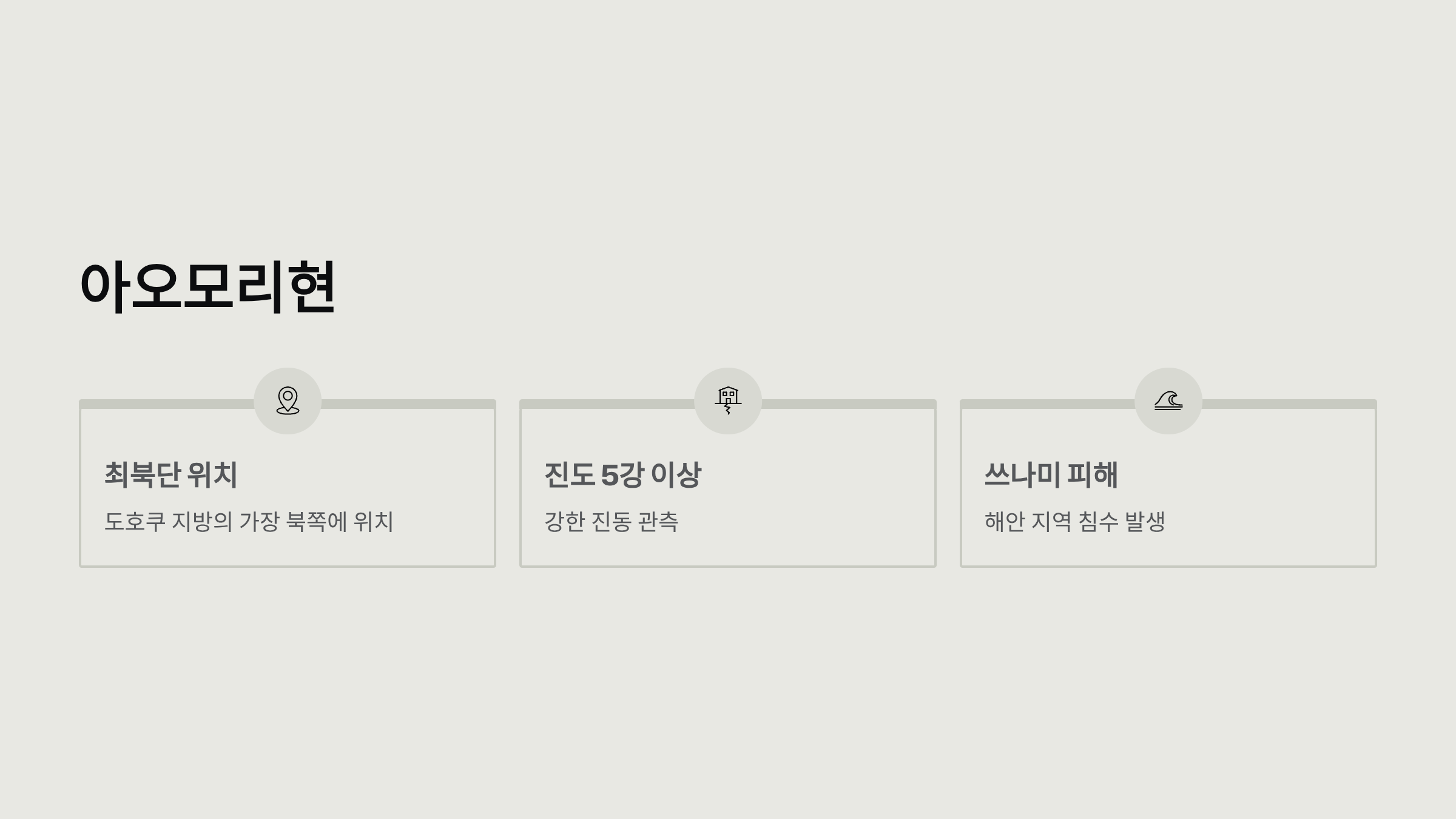 - 일부 지역에서는 높이 30m대의 쓰나미 관측