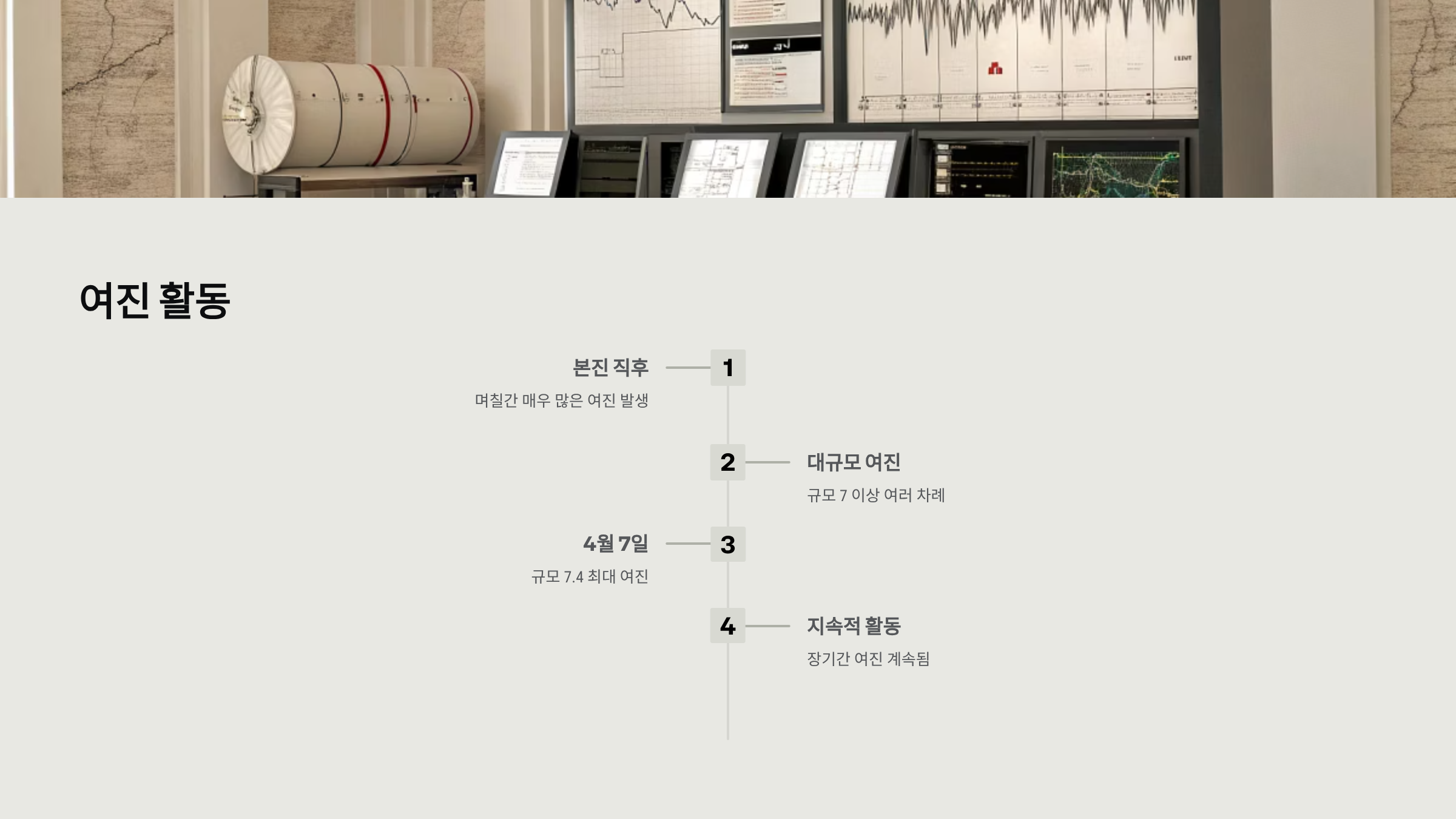 - 규모 7 이상의 여진도 여러 차례 발생