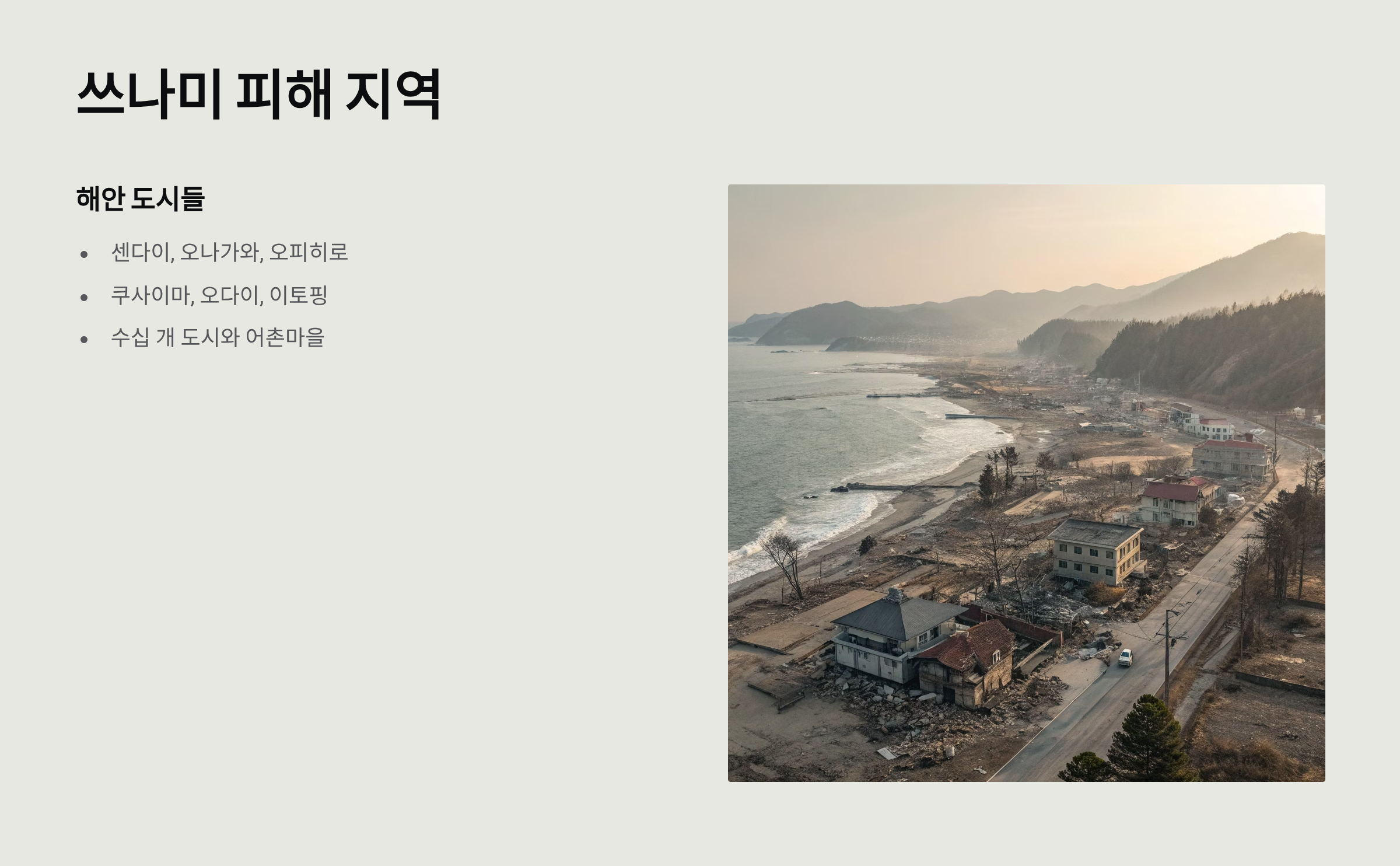 - 쓰나미 피해도 상당함