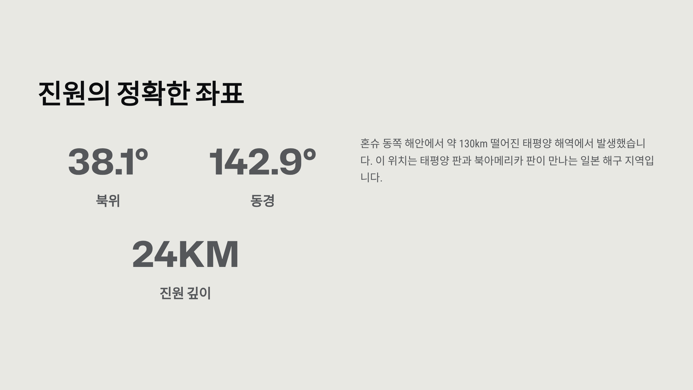 - 진원 깊이: 약 24km (지표면 아래)