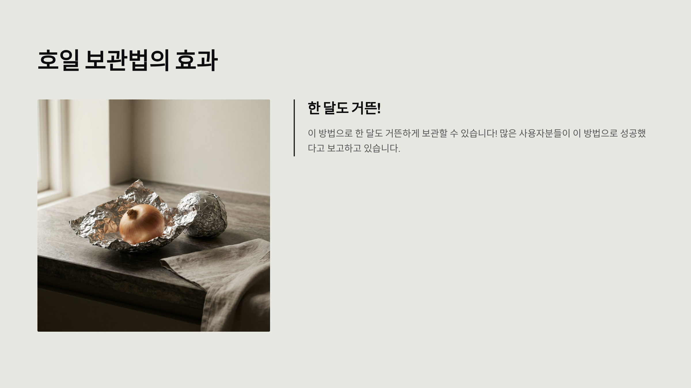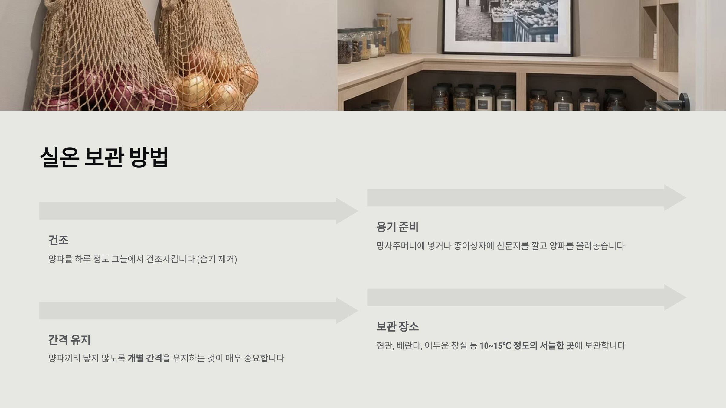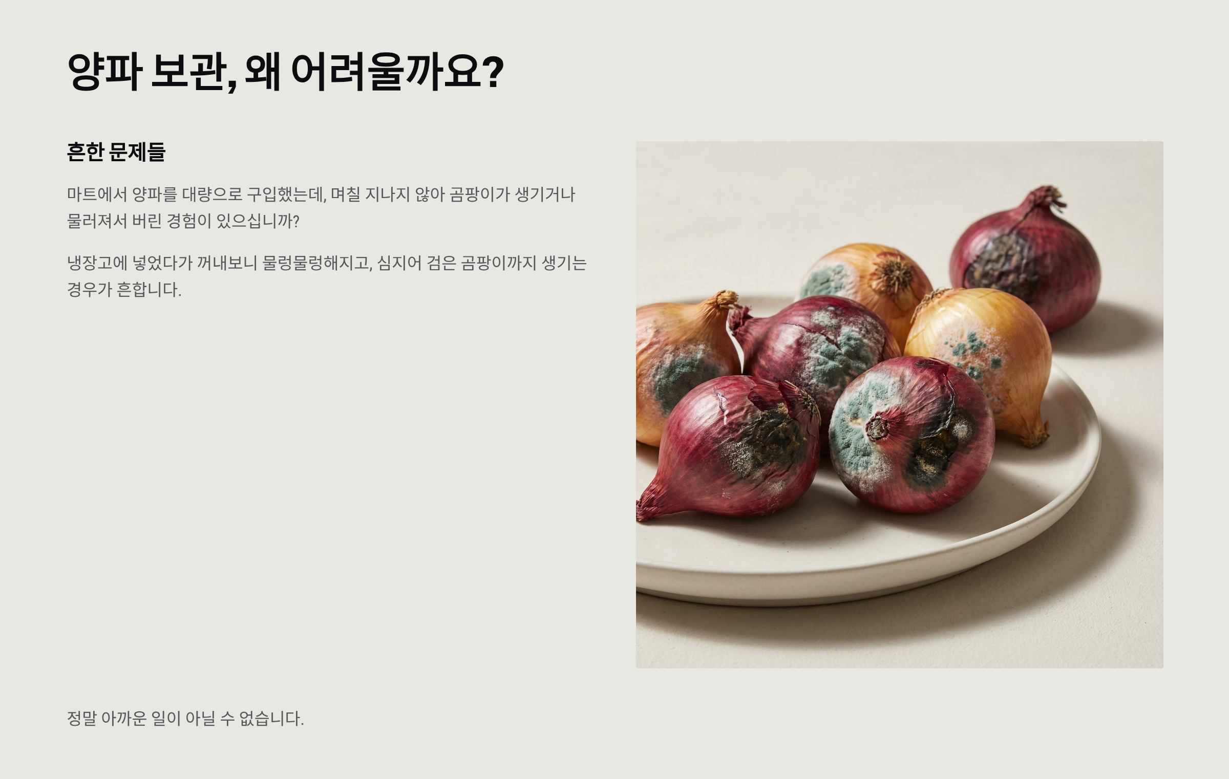 - 🧅 실온 보관: 간단하고 경제적 (1~3개월)