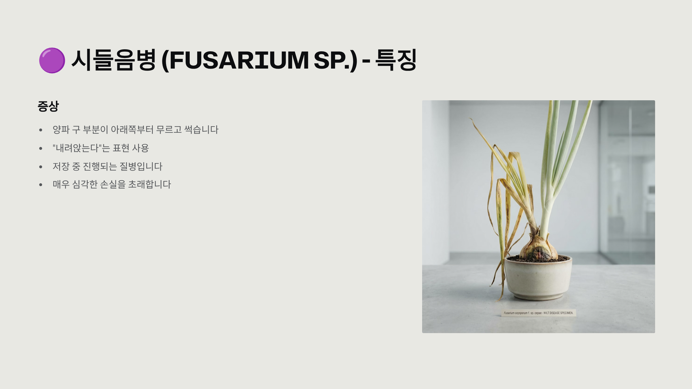 - 양파의 목 부위와 뿌리에서 주로 발생합니다