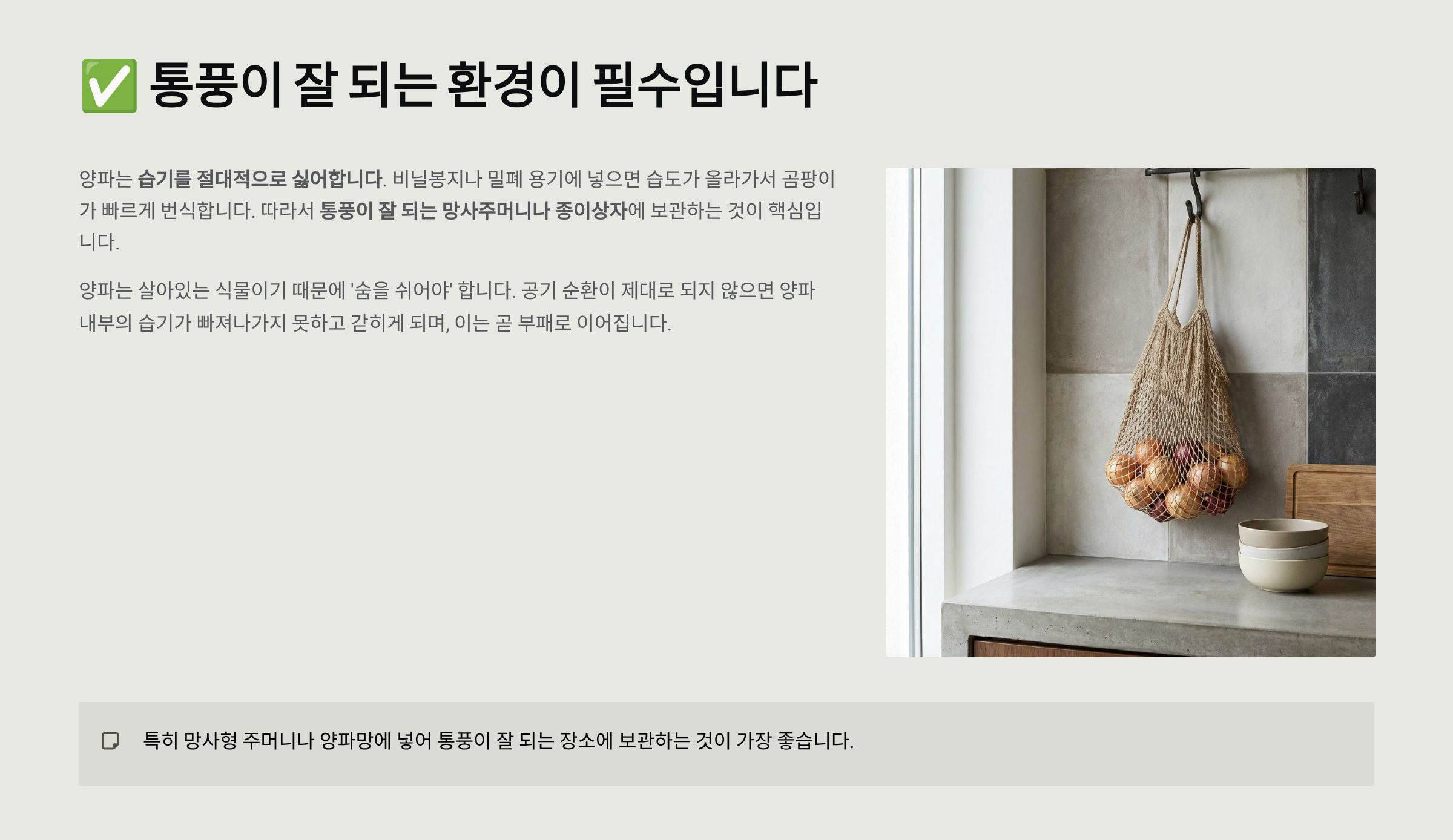 📌1. 양파 보관의 황금 법칙 3가지 🎯