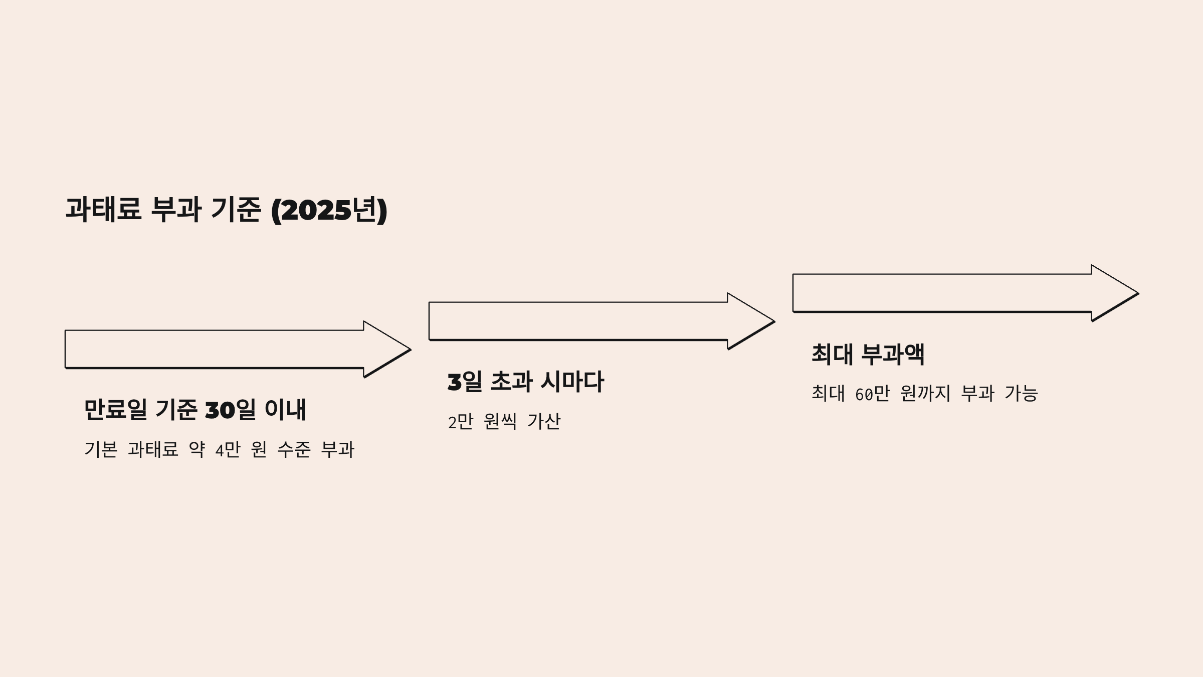 - 이후 3일 초과 시마다 2만 원씩 가산, 최대 60만 원까지 부과 가능.