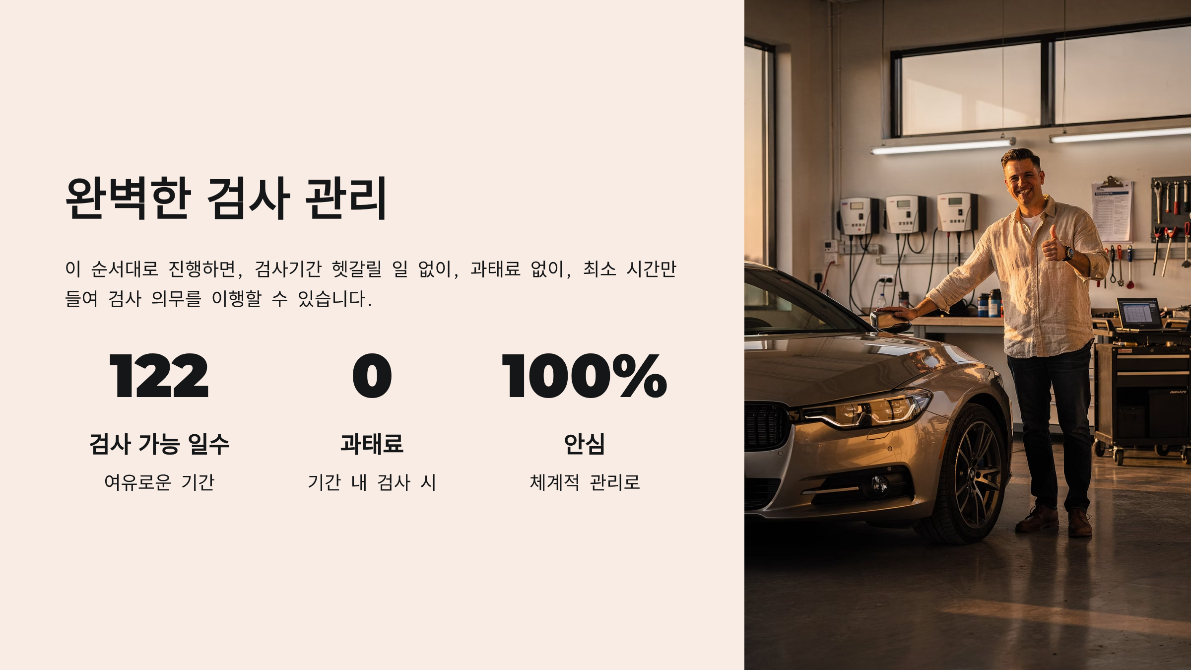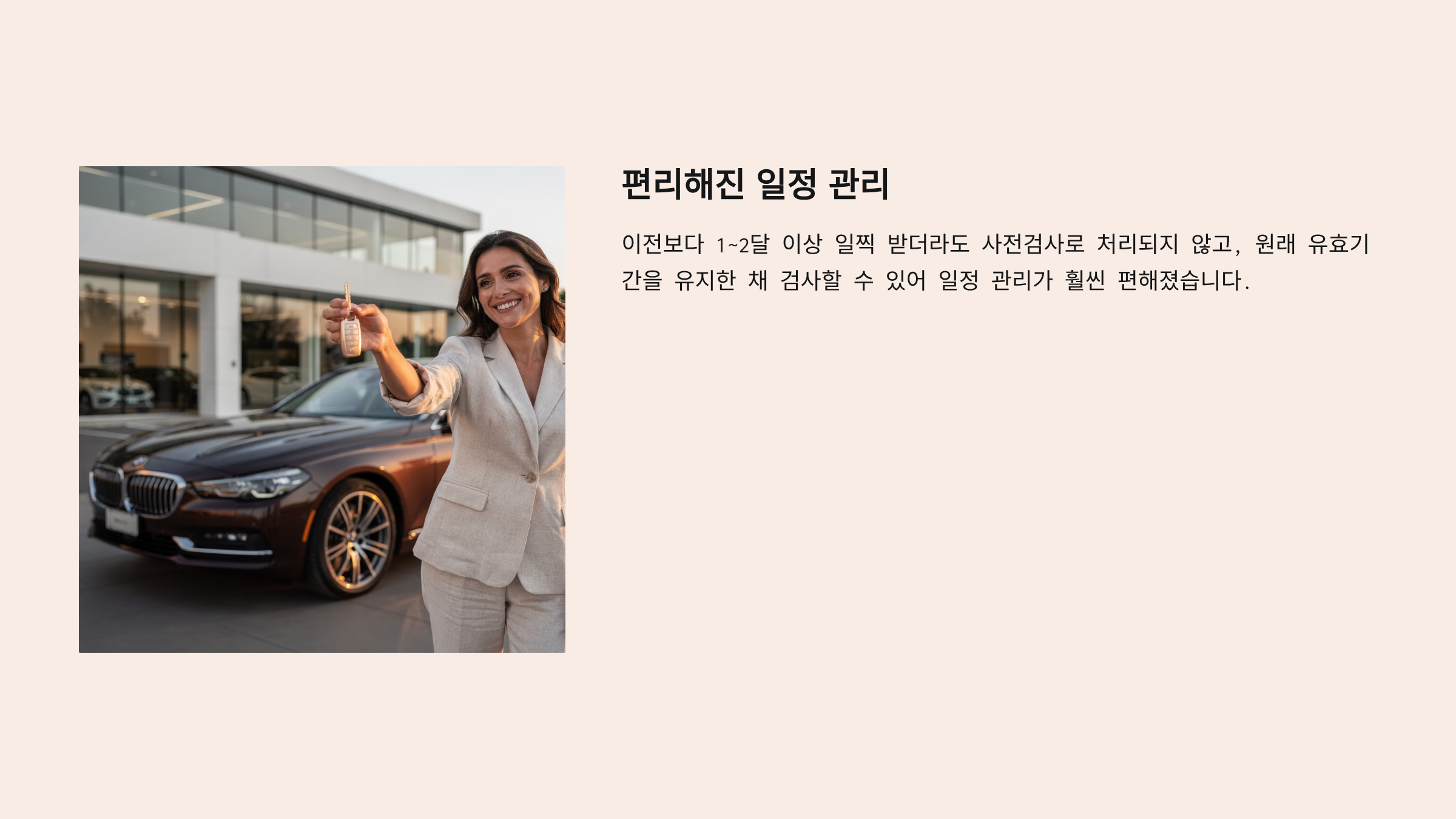 이제는 이전보다 1~2달 이상 일찍 받더라도 사전검사로 처리되지 않고, 원래 유효기간을 유지한 채 검사할 수 있어 일정 관리가 훨씬 편해졌습니다.